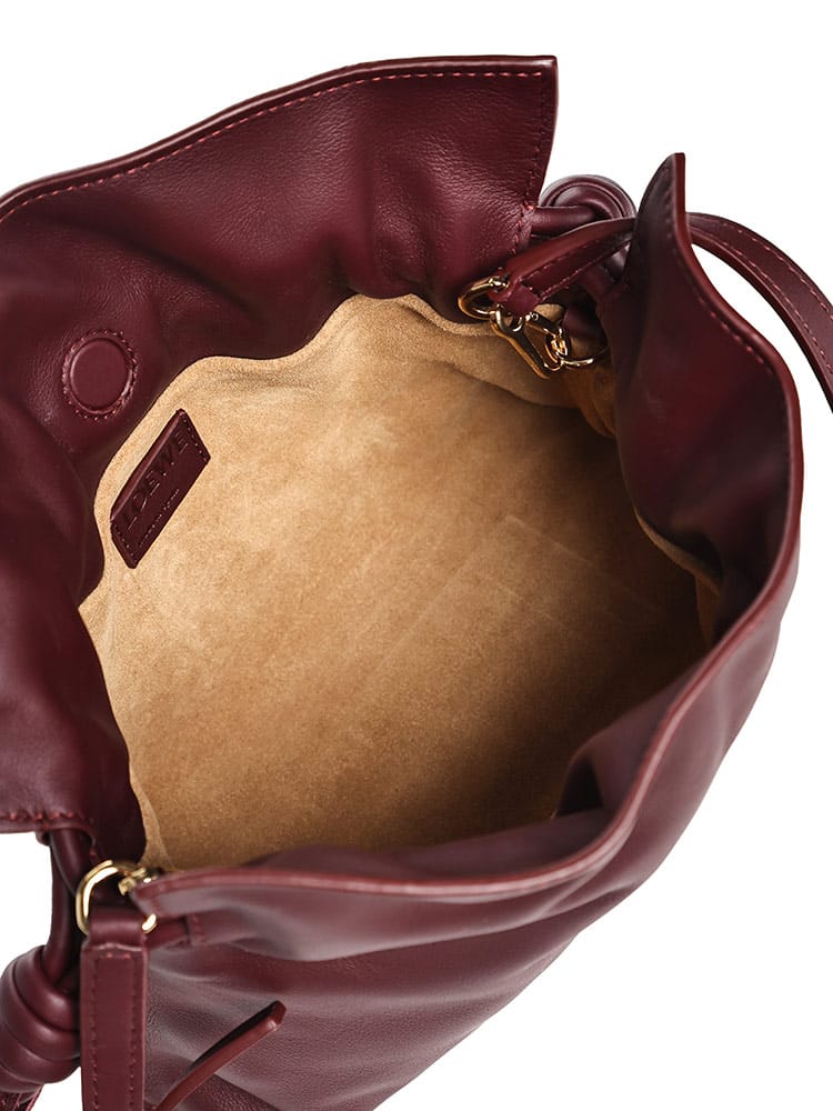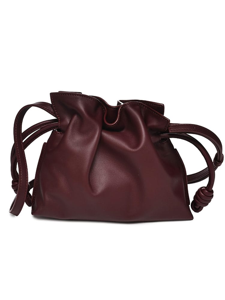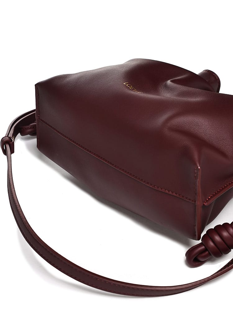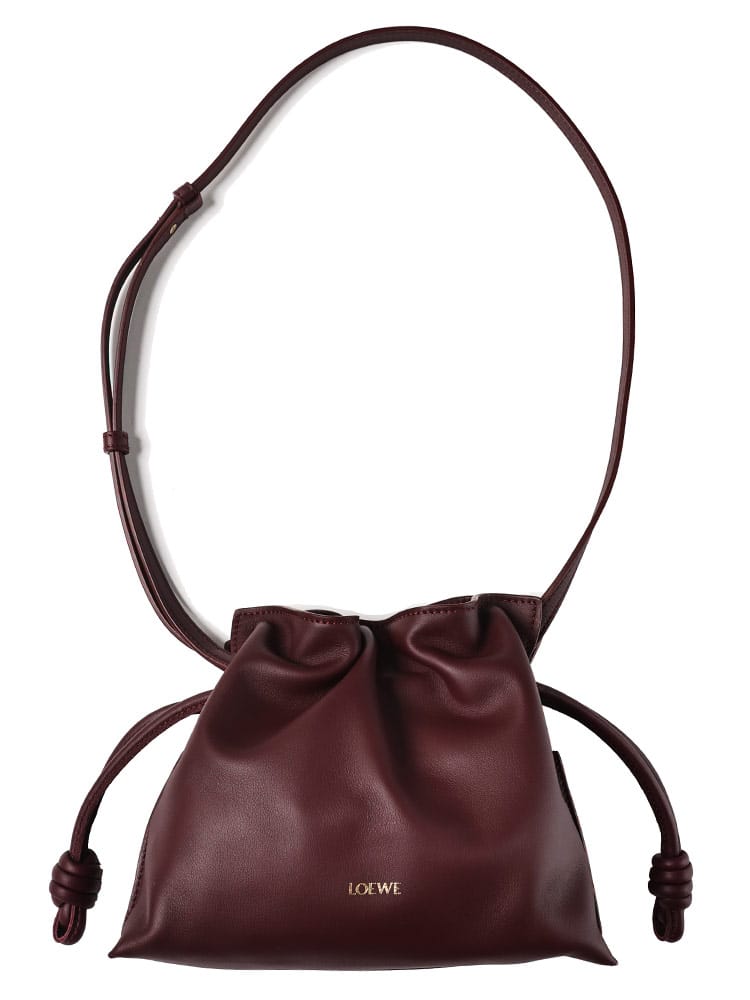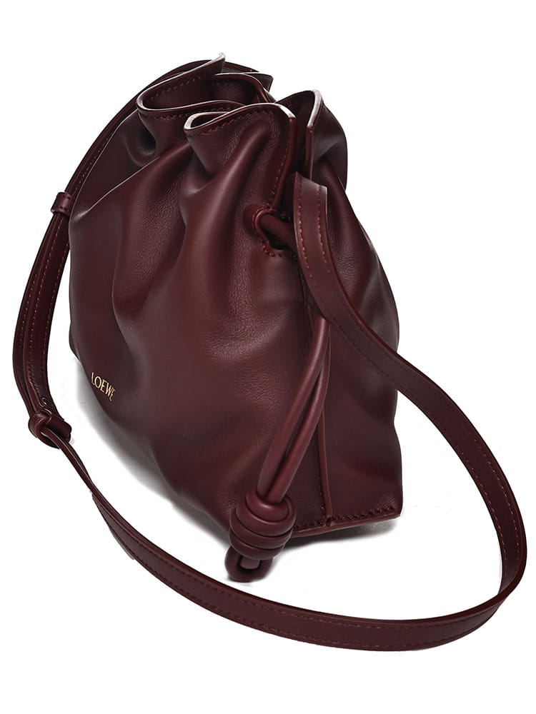 1980年代に発売されたフラメンコクラッチは、象徴的なコイル状の結び目で仕上げられたドローストリングプルで開閉可能。本製品はナパカーフスキン製のミニバージョンです