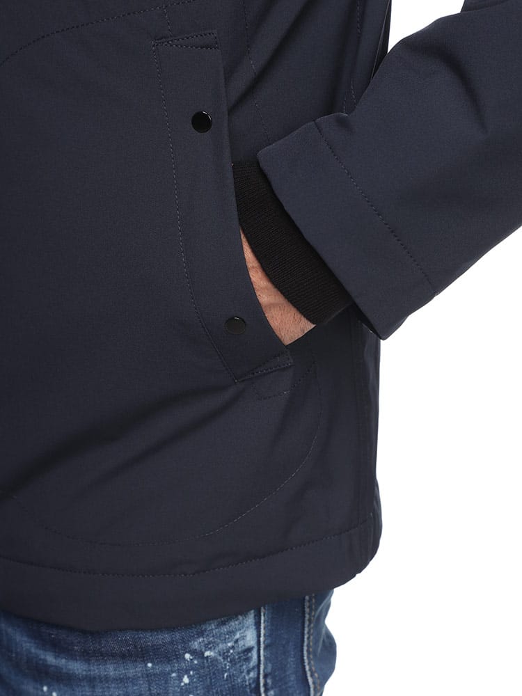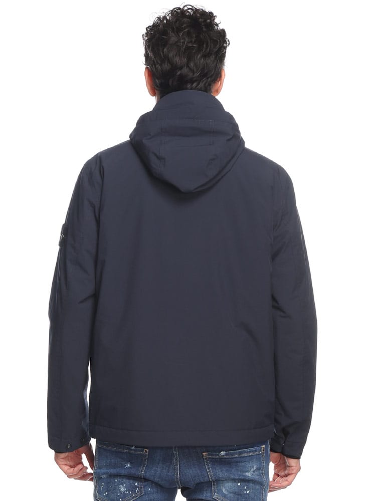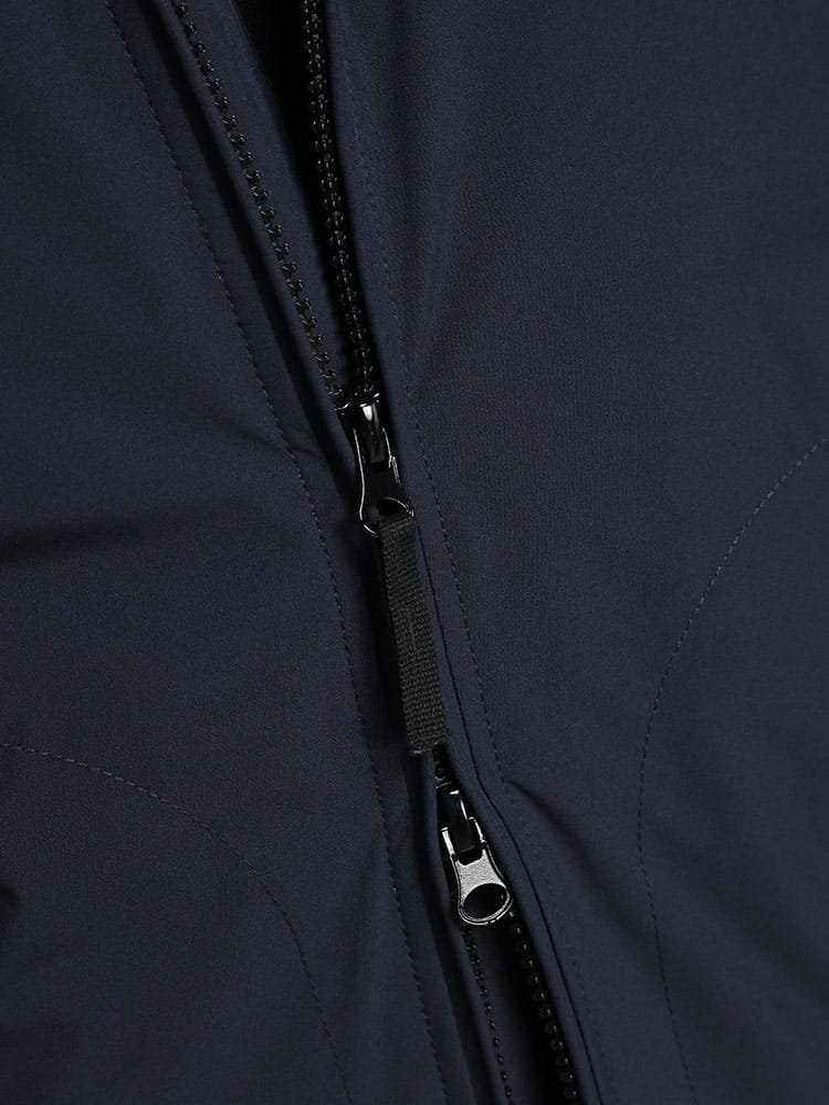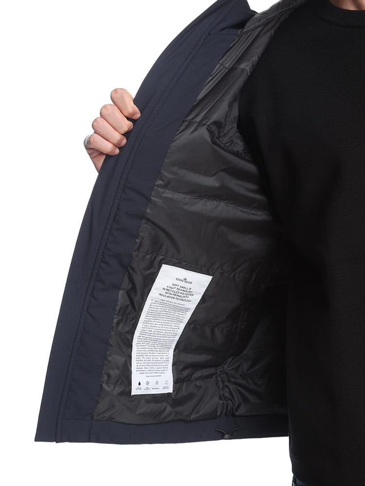 3層構造の機能性生地を使用したブルゾン。100%リサイクルポリエステルの表地を、通気性と防水性、防風性に優れた内側のメンブレンにラミネートしています。ガーメントダイ。