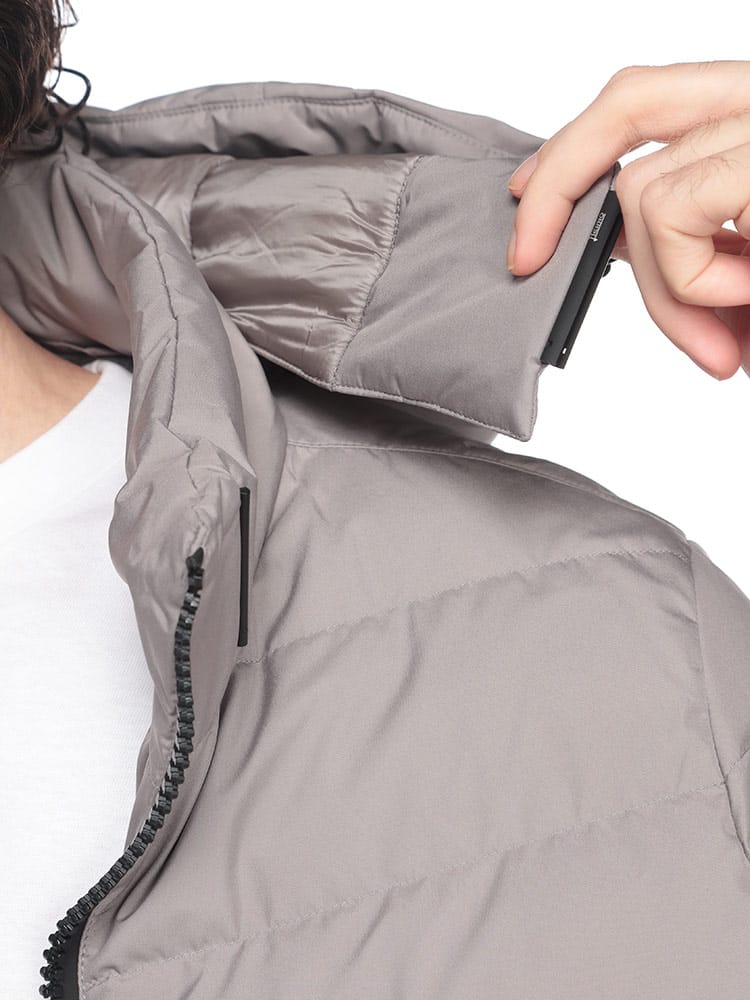 素材 :[表地]ポリエステル100%(合成樹脂ラミネート) [裏地]ナイロン100% [メッシュエッジ]ナイロン75% ポリウレタン25% [フード中綿]ポリエステル100% [詰物]ダウン80% フェザー20%