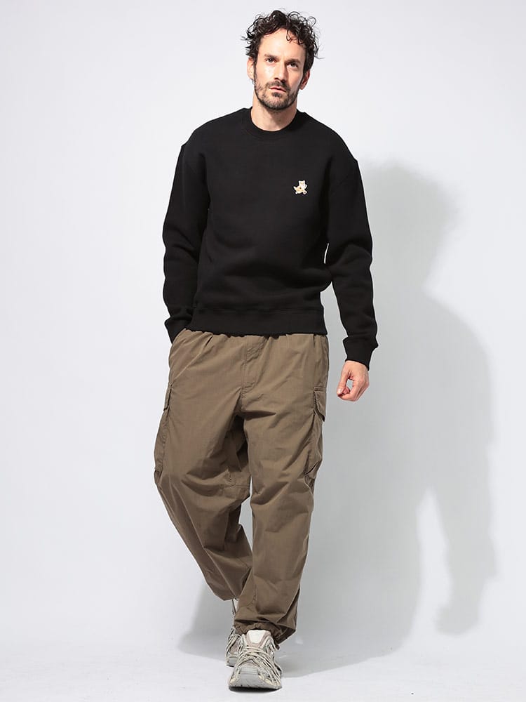 ブラッシュド・フリース長袖スウェット。コンフォートフィットで、胸元にスピーディーフォックスの刺繍パッチが施されています。