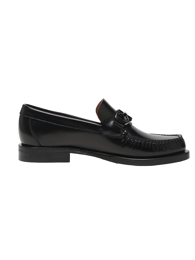 フェラガモのアイコニックなガンチーニ金具が特徴のビットローファーです。上質なレザーを使用し、3Eのゆったりとした履き心地が魅力。ビジネスシーンからカジュアルなスタイルまで幅広く合わせやすく、長く愛用できる一足です。