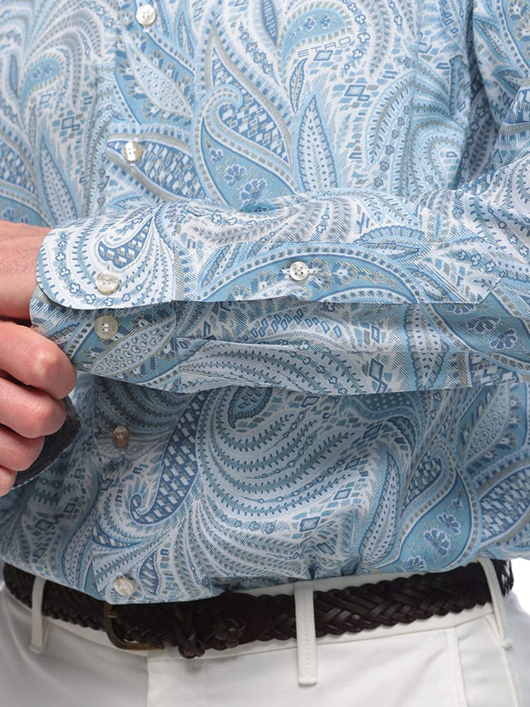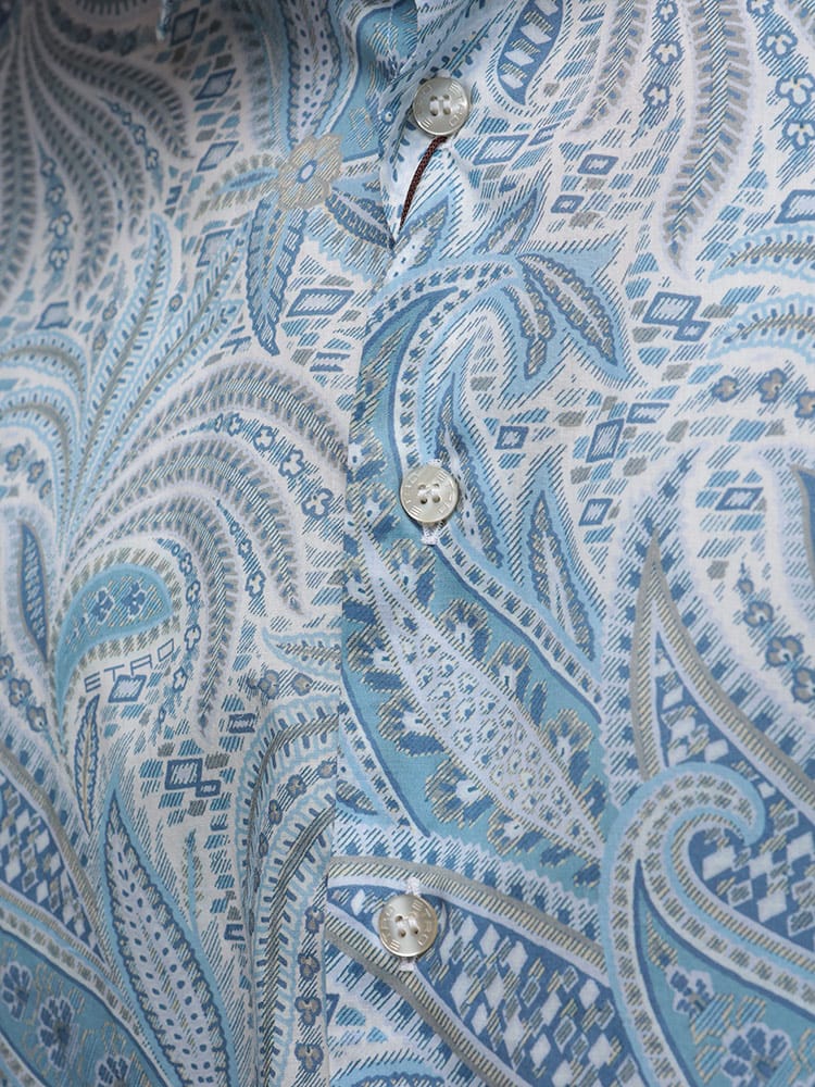 イタリアンエレガンスが薫る、芸術的な一着。ETROのメンズ長袖シャツは、ブランドを代表するペイズリー柄が美しく咲き乱れる、芸術作品のような一枚。コットン100%の柔らかな肌触りと、イタリアならではの色彩豊かなプリントが、着る人の心を華やかに彩ります。一枚でコーディネートの主役を張る存在感抜群のシャツは、カジュアルなデニムスタイルから、スーツスタイルまで幅広く活躍。いつもの装いに、イタリアの風を吹き込んでくれるでしょう。細部にまでこだわった丁寧な作り込みは、永く愛用できる証。特別な日に着るのはもちろん、普段使いにも最適です。