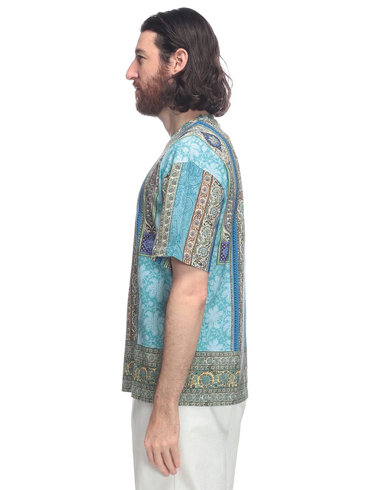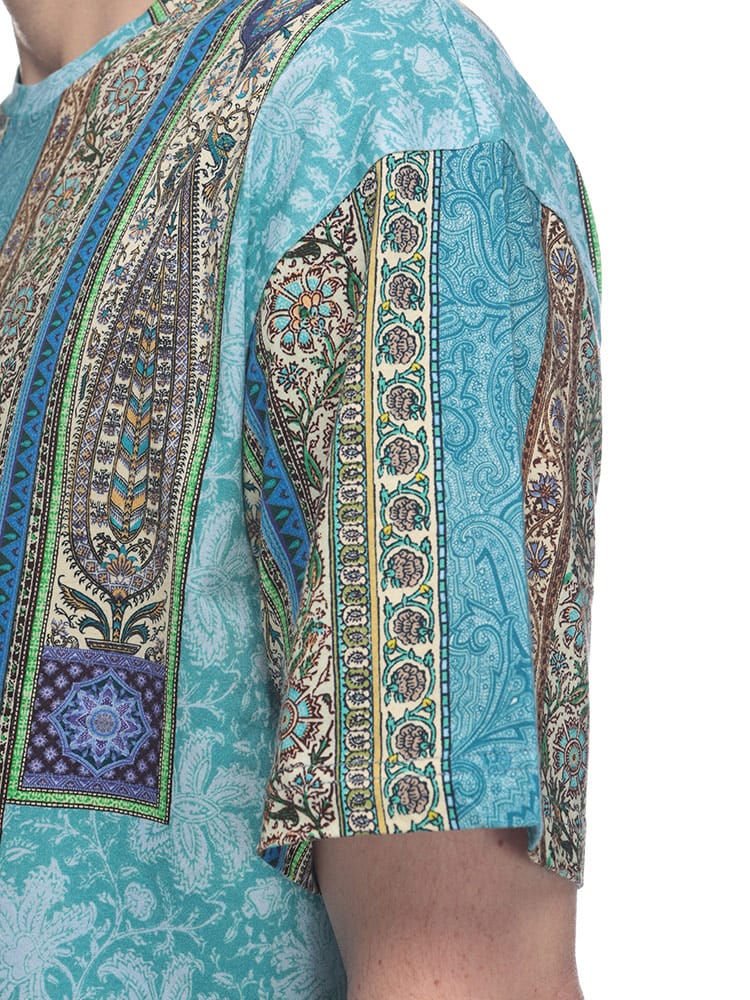 コットン100%の「プリント コットン Tシャツ」は、エトロならではの華やかなデザインが魅力です。クルーネックのソーホー・コンフォートフィットで、快適な着心地。花柄と幾何学柄を組み合わせた総柄プリントは、一枚でコーディネートの主役になります。カジュアルながらも洗練されたスタイルを演出する、個性的なアイテムです。