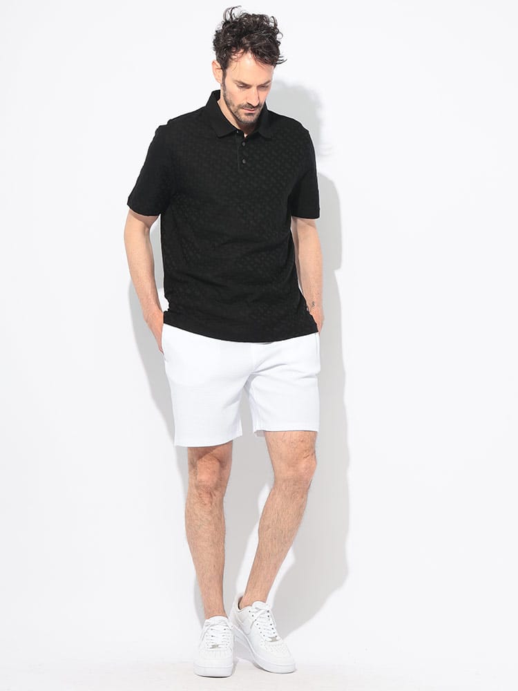 洒脱な個性を演出する、ジャガード半袖ポロシャツ。HUGO BOSSから、洗練された総柄ジャガードが目を引く半袖ポロシャツが登場。上質なコットン100%の素材は、肌触りが良く、春夏の装いに快適な着心地をもたらします。緻密なジャガード織りによる柄は、さりげなくも存在感があり、ワンランク上のカジュアルスタイルを演出。ベーシックなポロシャツのシルエットながら、テクスチャーで個性を際立たせます。一枚で着こなすのはもちろん、ジャケットのインナーとしても洒脱なアクセントに。大人の余裕を感じさせる、上品なサマースタイルを完成させる一着です。