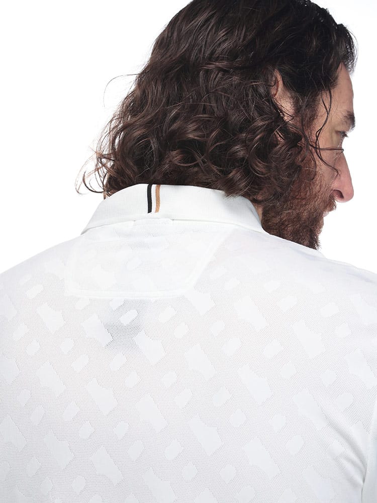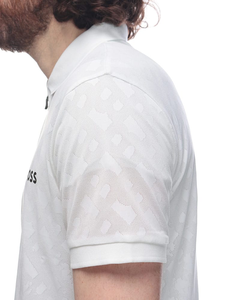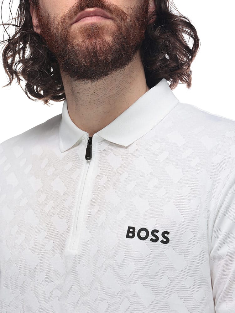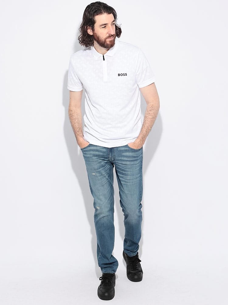爽やかな着心地が持続する、BOSS Menswearのポロシャツ。4WAYストレッチや湿度調節機能など、一歩進んだパフォーマンスが魅力的なスリムフィットのスタイルです。前立てにジップを配し、すっきりと仕上げています。同色のモノグラムをジャカードであしらいました。