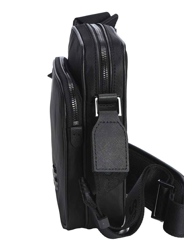 モダンな雰囲気を醸し出す、HUGO BOSSのレポーターバッグ。耐久性に優れたツイル素材に、ブランドの頭文字である「B」を重ねたDouble Bモノグラムを全面にあしらいました。無駄を削ぎ落としたスクエアフォルムが、洗練された印象を与えます。内側には小物の整理に便利なポケットを配し、機能性も抜群。普段使いから旅行まで幅広く活躍する、都会的な男性のためのアイテムです。