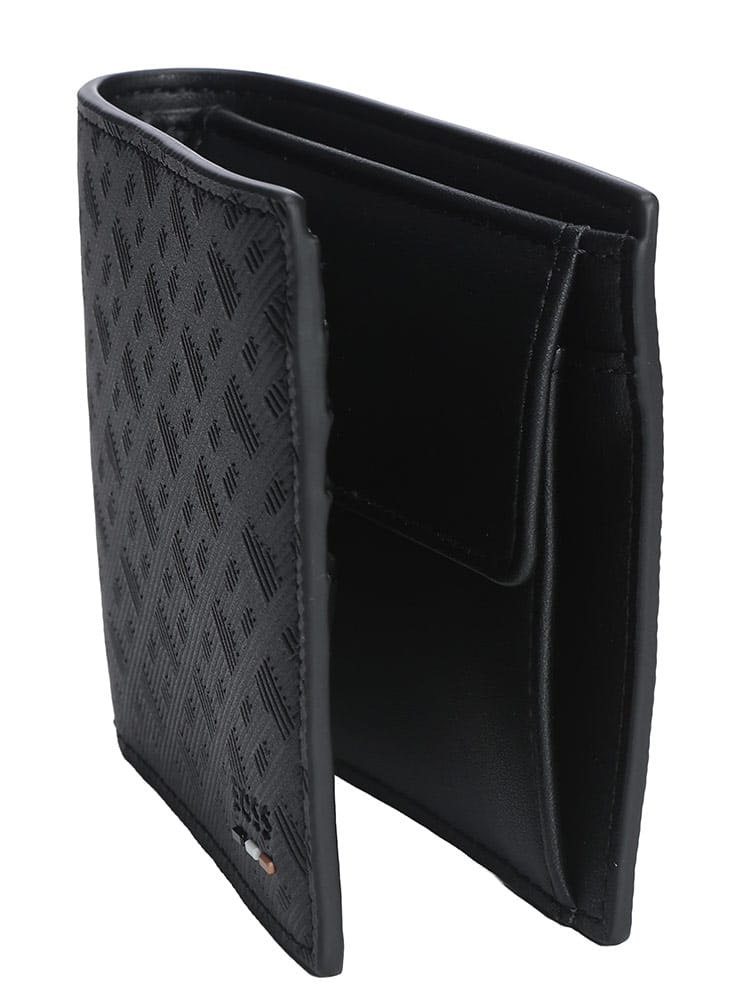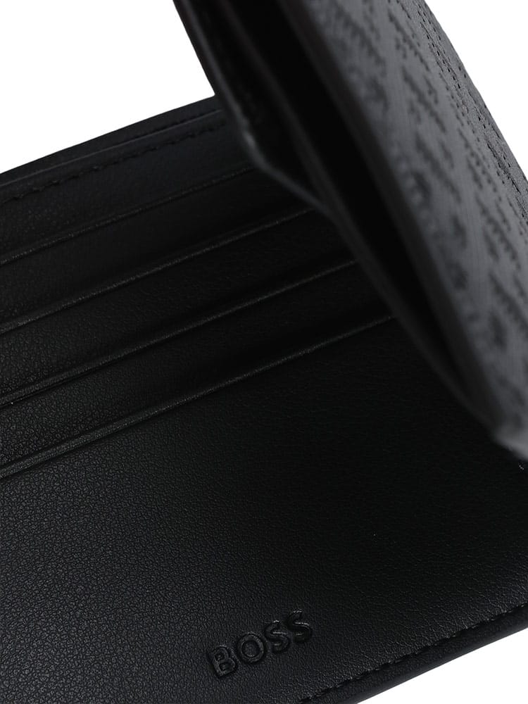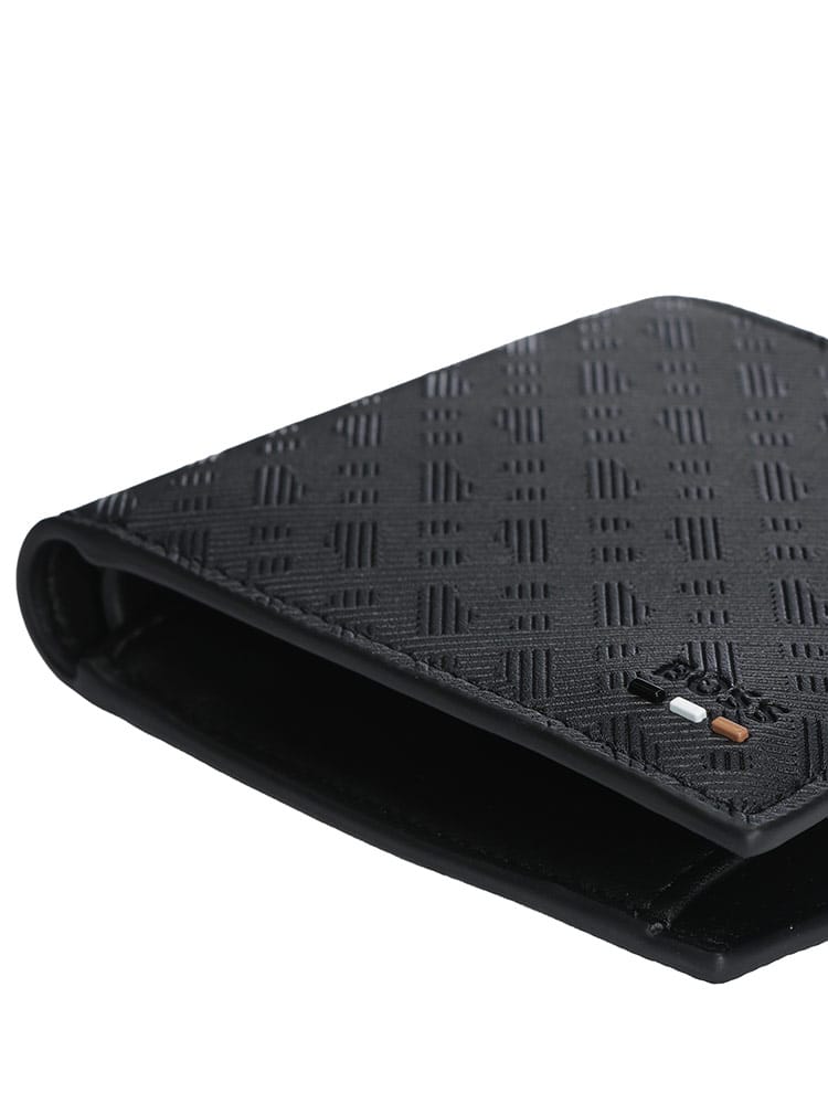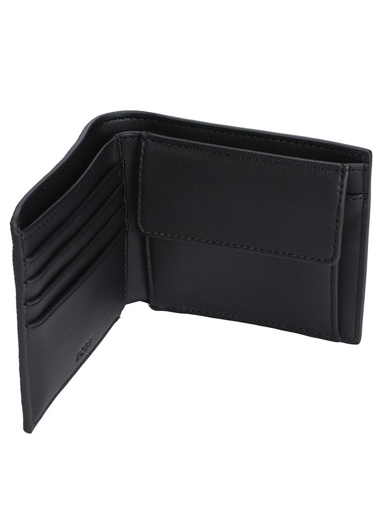 品格漂う佇まいが魅力のHUGO BOSSの二つ折り財布。上質なスムースレザーに、ブランドの頭文字である「B」を重ねたBBモノグラムが、シックな奥行きを演出します。無駄のないミニマルなデザインながら、札入れ、複数のカードスロット、そして小銭入れを完備。スマートさと実用性を両立したアイテムです。持つ人のスタイルを格上げする、洗練された大人のための逸品です。