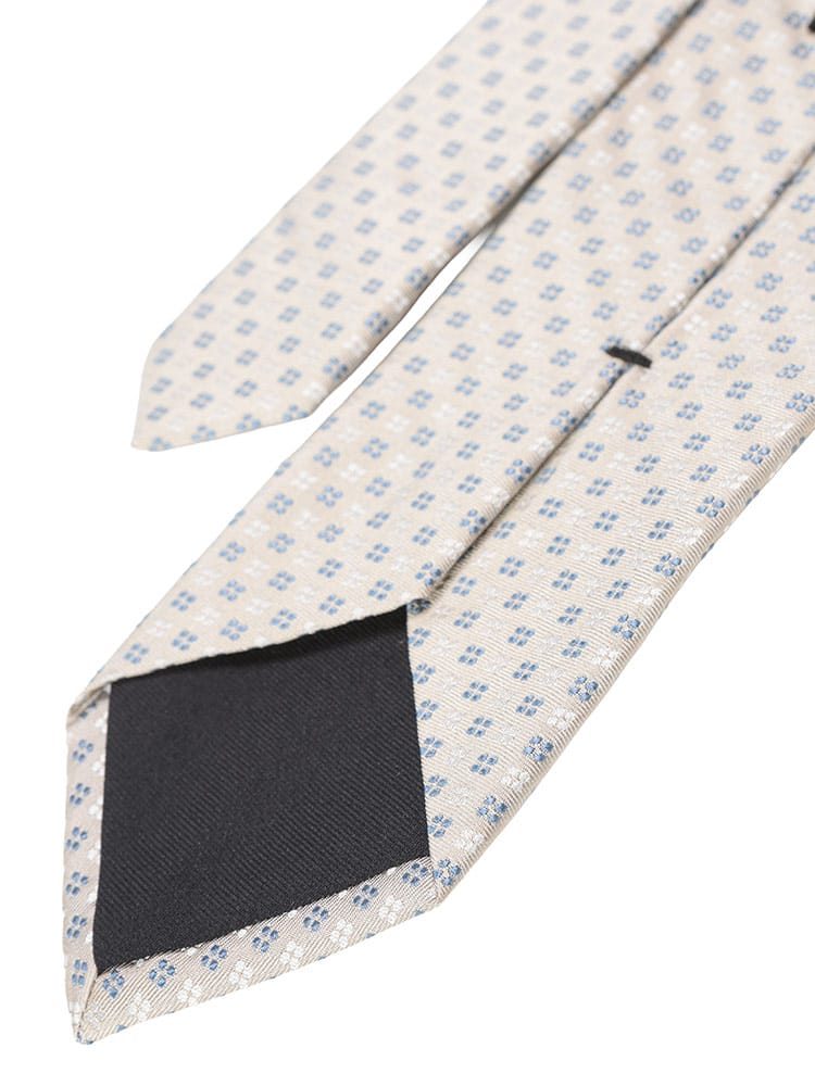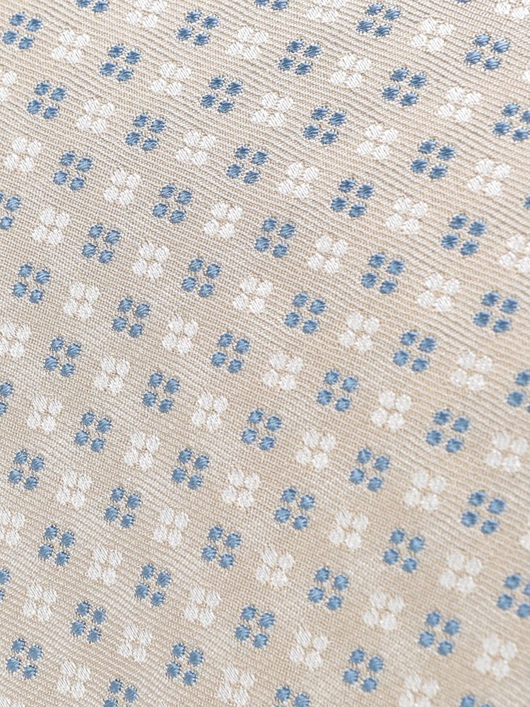 上品な光沢と滑らかな肌触りが魅力のシルク混ネクタイです。繊細な小紋柄が洗練された印象を与え、ビジネスシーンはもちろん、フォーマルな場にも活躍します。どんなスーツにも合わせやすく、Vゾーンを華やかに彩る一本です。