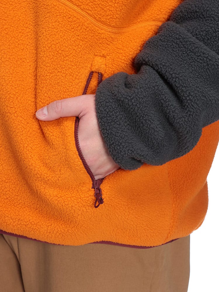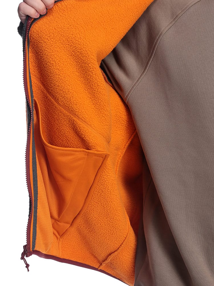 高い保温性で、寒い季節の着こなしに欠かせないフリースジャケット。軽量ながらも暖かく、アウターとしてはもちろん、インナーとしても活躍します。シンプルなデザインで、どんなアイテムとも相性抜群。左胸のブランドロゴ刺繍が、さりげないアクセントになっています。ジップ付きのサイドポケットと胸ポケットは、小物の収納にも便利です。大きいサイズの方もゆったりと着用できる、機能性と着回し力に優れた一着です。