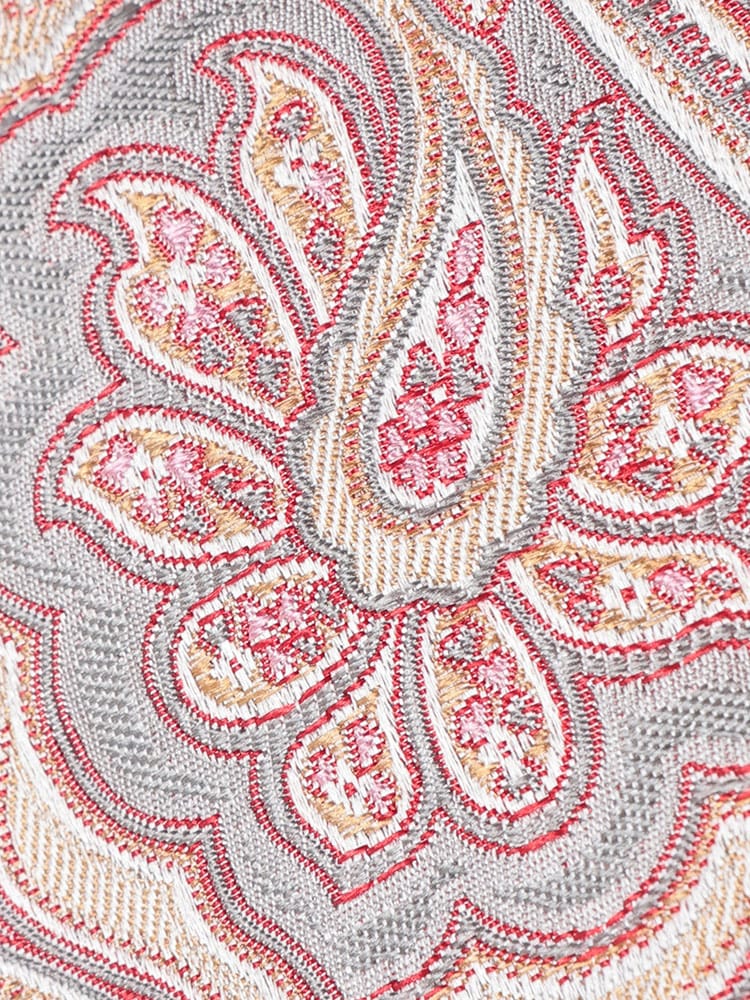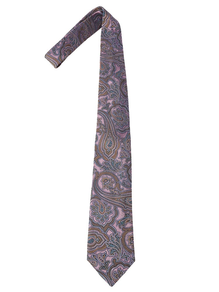 華やかなフラワーと、エトロの象徴であるペイズリーが織りなすアートのようなネクタイ。上質なシルク100%の生地が、美しい光沢と繊細なドレープを生み出し、首元を優雅に彩ります。ビジネスシーンにクリエイティブな個性を加え、パーティーでは主役級の存在感を放つでしょう。イタリアの伝統とモダンな感性が融合した、ギフトにも最適な逸品です