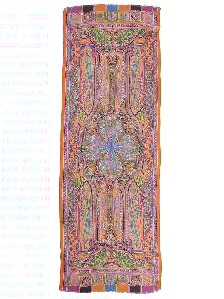 エトロのストールは、ブランドの象徴であるペイズリー柄が華やかでエレガントな印象を与えます。上質なカシミヤ混素材を使用しており、なめらかで柔らかな肌触りが魅力です。首元に巻くだけで、コーディネート全体を格上げし、上品で洗練されたスタイルを演出します。
