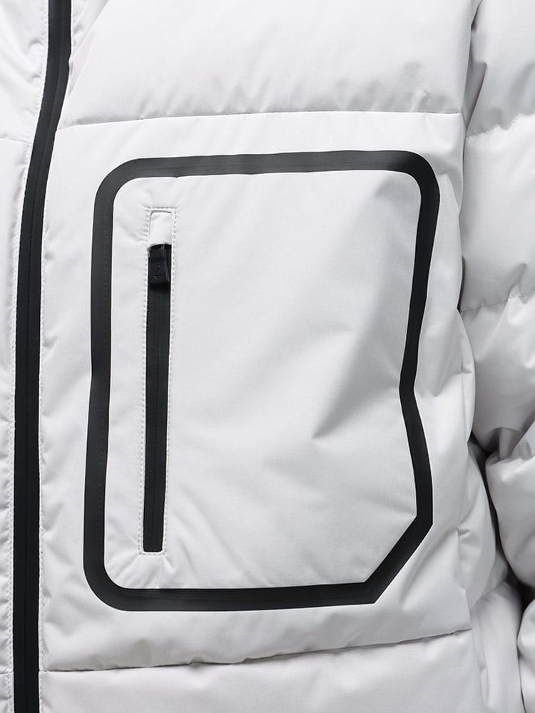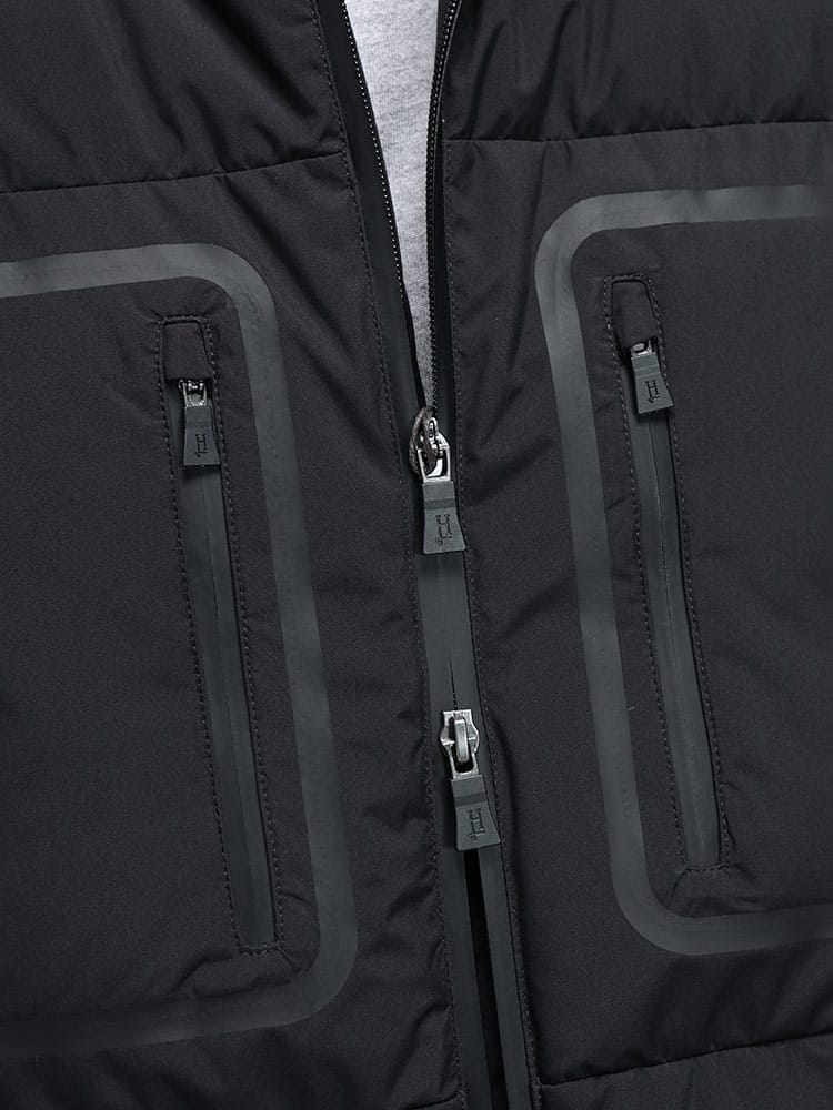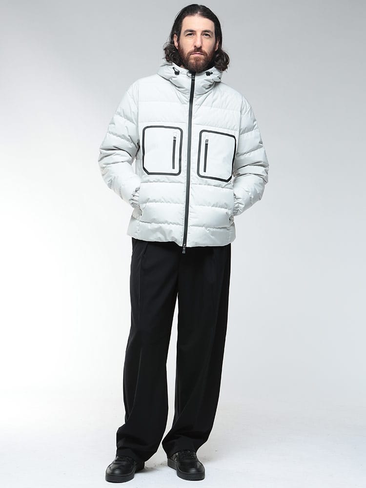 フーデッドダウンブルゾン「PRO-METEO」。軽くて暖かく、撥水加工を施した機能的な一着です。シンプルで洗練されたデザインは、どんなスタイルにも合わせやすく、デイリーユースからアクティブなシーンまで幅広く活躍します。フードは取り外し可能で、スタイルに合わせて着こなしを変えられます。上品さと機能性を両立した、ヘルノらしいエレガントなアイテムです。