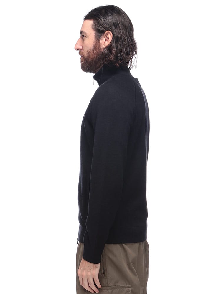 上質なコットンとウールをブレンドした素材で、肌触りが良く、暖かさと快適な着心地を両立しています。シンプルで洗練されたデザインは、どんなスタイルにも合わせやすく、一枚で着るのはもちろん、アウターのインナーとしても重宝します。ビジネスからカジュアルまで、幅広いシーンで活躍するエレガントな一着です。