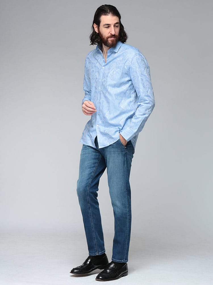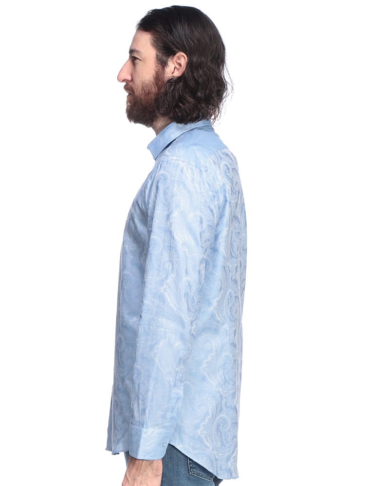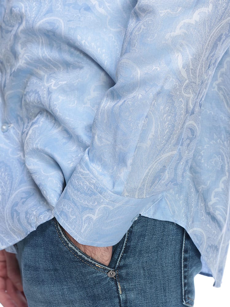 「ETRO(エトロ)」を象徴する、華やかなペイズリー柄が目を引く長袖シャツです。イタリアらしい色彩豊かなプリントは、まさに芸術作品のような美しさ。上質な素材が生み出す滑らかな肌触りと、洗練されたシルエットが、着る人に優雅なエレガンスを与えます。