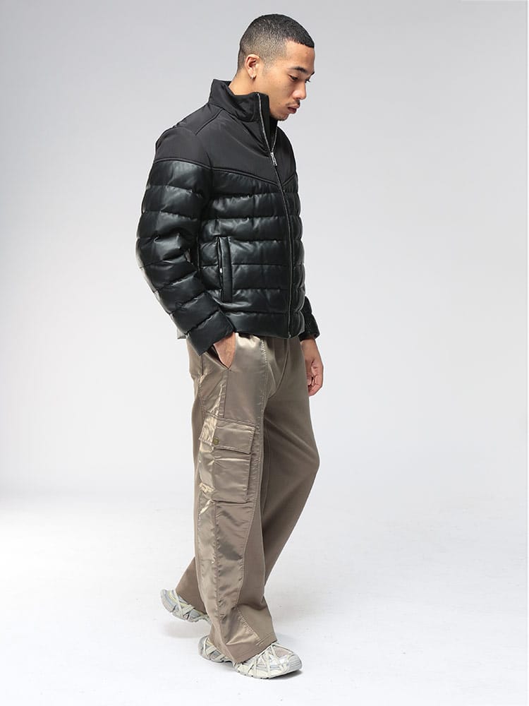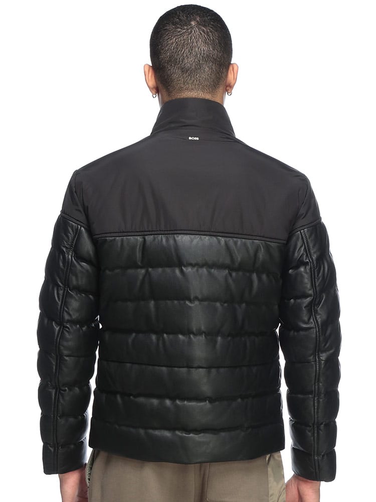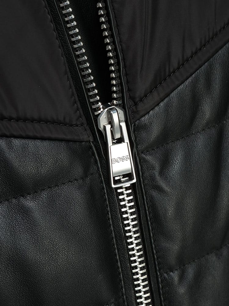 都会に映える、異素材使いの洗練ブルゾン。HUGO BOSSが贈る、モダンでエッジィなスタンドカラーブルゾン。贅沢に使用された上質なレザーが醸し出す重厚な質感と、異素材の切り替えが織りなすコントラストが、アウターに奥行きを与えます。スマートなシングルジップデザインと計算されたシルエットが、着る者のスタイルを格上げ。軽量でありながら保温性に優れた中綿を封入し、寒くなる季節にも快適に着用できます。細部にまで妥協しないヒューゴボスの美意識が凝縮された、大人のための自信作です。