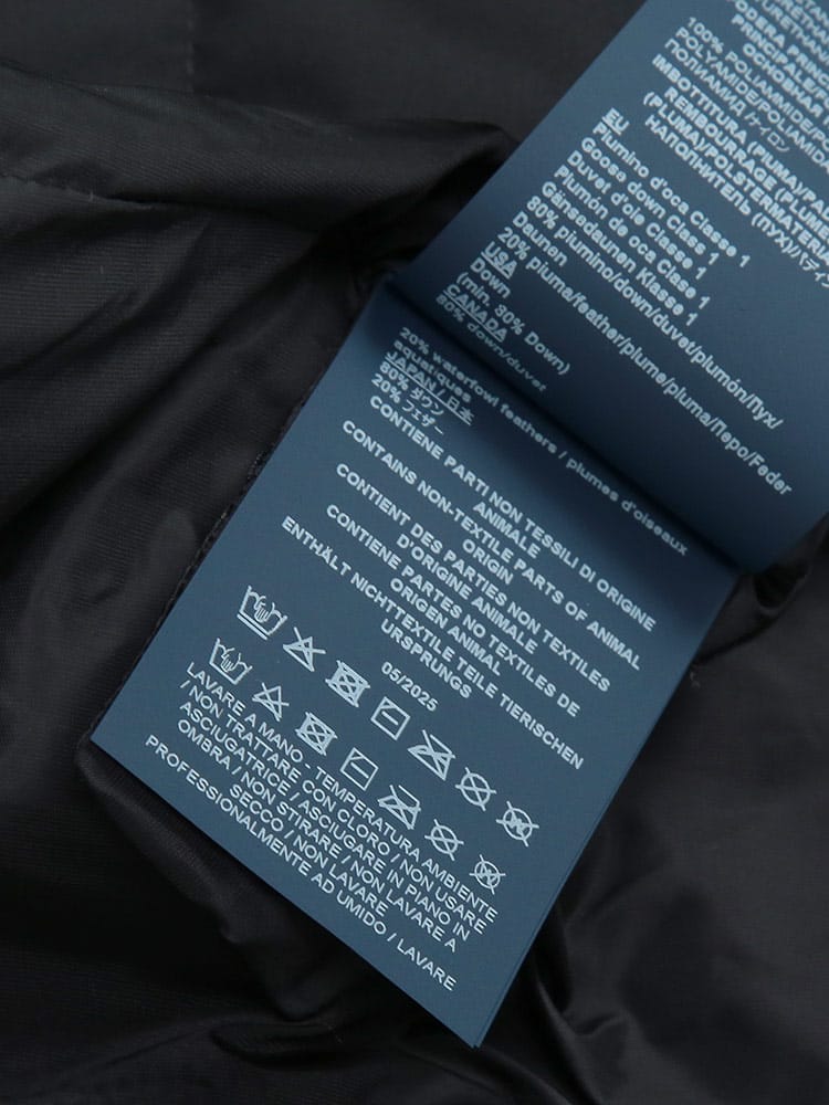 素材 :[表地]ポリエステル100%(合成樹脂ラミネート) [裏地]ナイロン100% [中綿]ダウン80% フェザー20%
