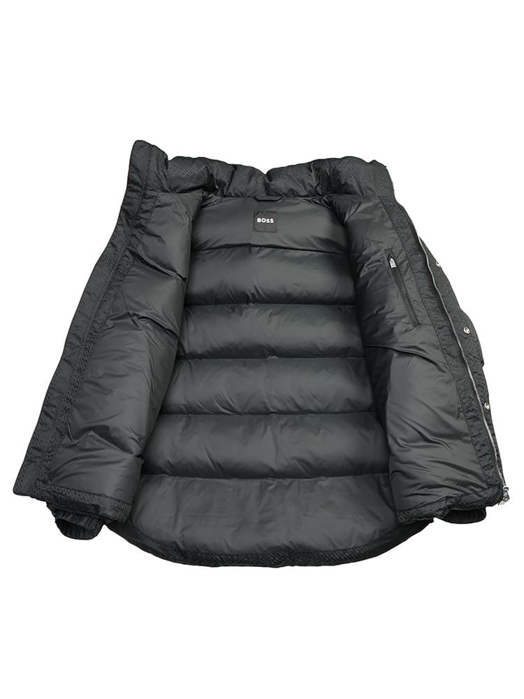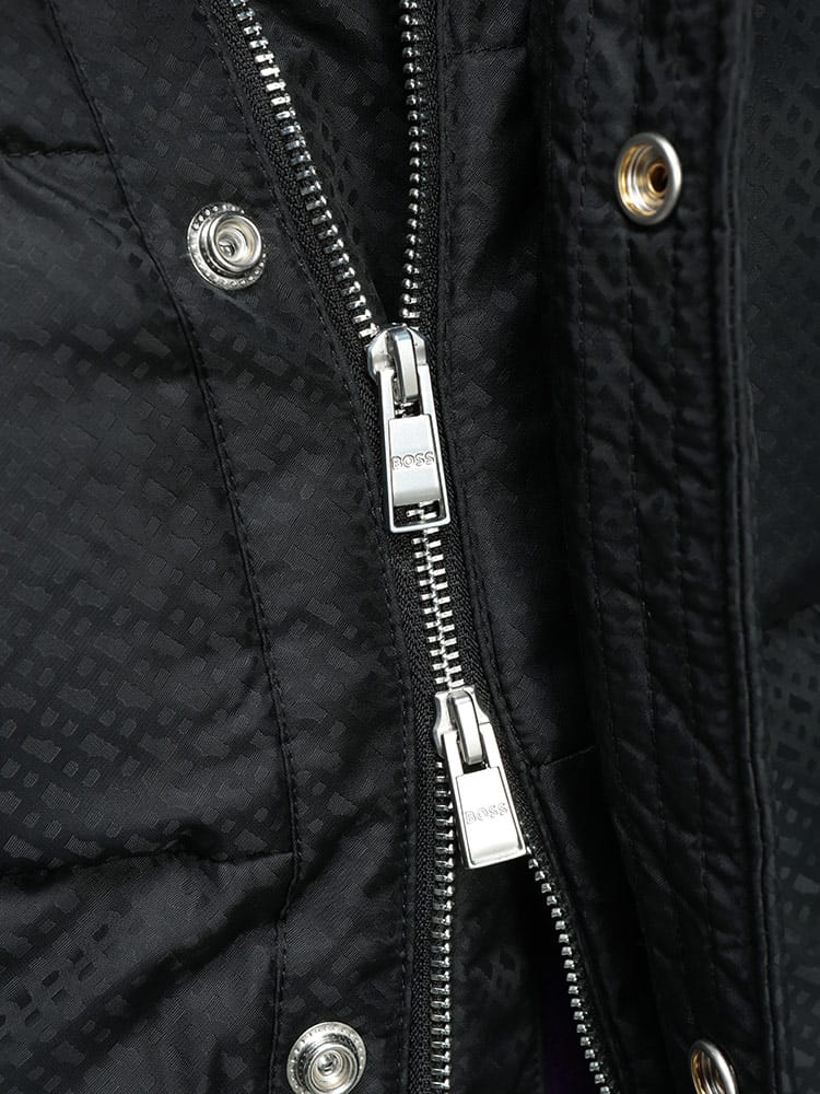 モダンなテーラリングと実用的な機能性を兼ね備えたヒューゴボスの中綿ジャケット。表面にはブランドの新しいアイコンであるBBモノグラムがさりげなくデザインされ、ラグジュアリーな雰囲気を醸し出します。中綿入りで軽量ながらも高い保温性を発揮し、寒い季節のビジネスからカジュアルまで幅広く対応。取り外し可能なフード仕様により、着こなしや天候に応じて表情を変えられる汎用性の高さも魅力です。ダブルジップと機能的なポケットを備え、都会的で洗練された大人の男性にふさわしい防寒アウターです。