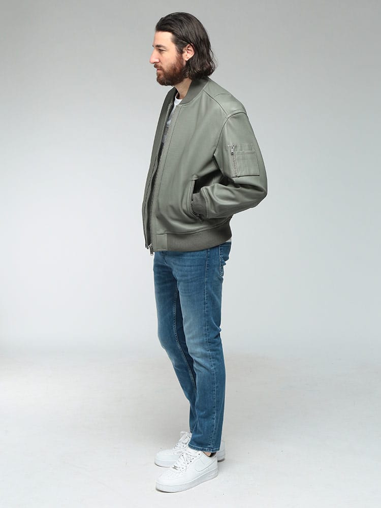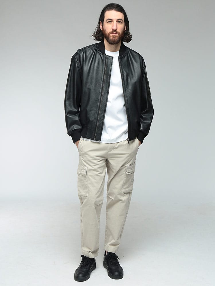 モダンで都会的なテーラリングに定評のあるHUGO BOSS(ヒューゴボス)のレザーボンバージャケット。厳選された最高級の羊革(シープスキン)を贅沢に使用し、袖を通した瞬間から身体に馴染む驚くほどしなやかで柔らかな質感が魅力です。無駄を削ぎ落としたミニマルなシングルジップのシルエットに、襟元や袖口のリブニットがスポーティーな軽快さをプラス。使い勝手の良い3つの外ポケットに加え、内ポケットも備えた実用性の高さも光ります。デニムに合わせた武骨なスタイルから、スラックスと組んだクリーンなモードスタイルまで、羽織るだけで男らしさと品格を格上げ。時代に左右されず永く愛用できる、一生モノのレザーアウターです。