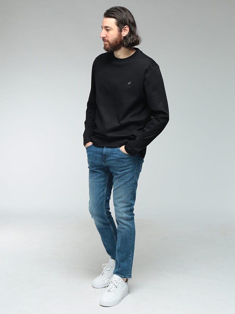 厳選されたコットンをベースに、ポリエステルとポリウレタンを混紡したハイブリッドなストレッチ素材を採用し、デニムらしい重厚なルックスと、身体の動きに追従する驚くほど軽やかな履き心地を両立しました。無駄を排除したミニマルでクリーンなデザインが、モダンなアーバンスタイルを演出。計算されたスマートなシルエットは、カジュアルなTシャツスタイルから、タイトなジャケットを合わせたビジネスカジュアルまで、あらゆるシーンで洗練された脚線美を構築します。長時間の着用でもストレスを感じさせない機能美と、ブランドの品格が宿る至高の一本です。