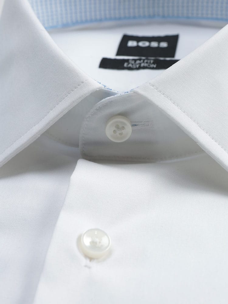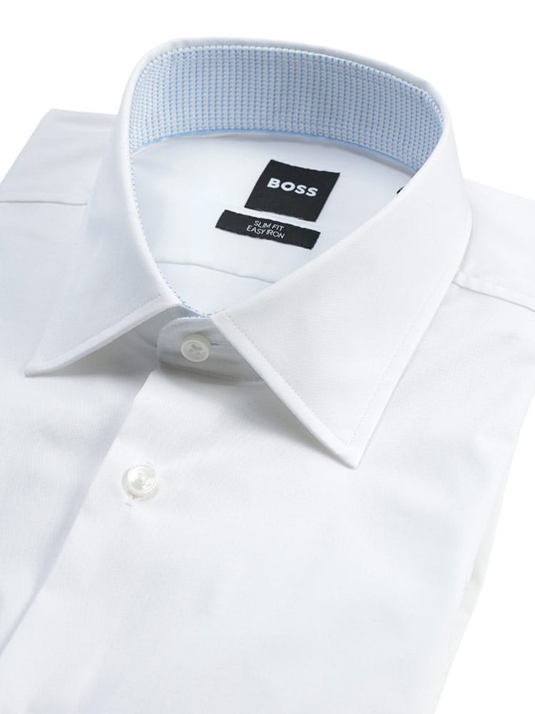 ビジネスの最前線で戦う男性をスマートに支える、HUGO BOSS(ヒューゴボス)の「SLIMFIT」ドレスシャツ。最大の魅力は、綿のナチュラルな風合いにポリウレタンをブレンドしたストレッチ素材による、驚くほど快適な着用感。体にフィットするスリムなシルエットながら、動きを妨げず一日中ストレスフリーに過ごせます。さらに、シワになりにくくお手入れが簡単なイージーアイロン仕様。忙しい朝もサッと整えるだけで、清潔感あふれるスタイルが完成します。