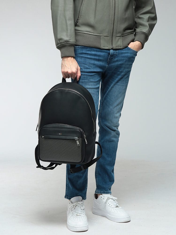 HUGO BOSS(ヒューゴボス)の洗練された都会的なエッセンスが凝縮された、モダンなバックパックです。全体にアイコニックなBBモノグラムを配したデザインは、控えめながらも圧倒的なクラス感を漂わせます。素材にはポリエステルやナイロンなどの高機能な混紡素材を採用。耐久性に優れ、日常のハードな使用にも耐えうるタフさと、長時間背負っても疲れにくい軽やかさを両立しています。