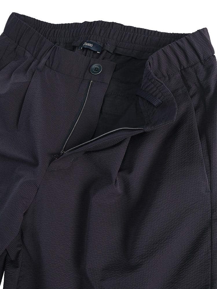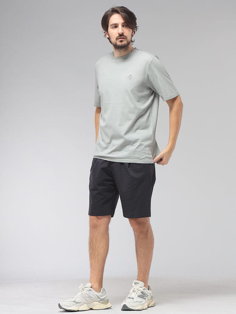 イタリアの気品を纏うHERNO(ヘルノ)のシアサッカーショーツ。表面に独特の凹凸があるシアサッカー生地を採用し、肌離れが良く清涼感溢れる穿き心地を春夏シーズンに提供します。フロントにはワンタックを施すことで腰回りに適度なゆとりを持たせ、大人の余裕を感じさせるクラシックかつモダンなシルエットを構築。ウエストはゴムとドローコードを配したイージー仕様ながら、ジップフライを採用することでドレスパンツのような端正な顔立ちをキープします。利便性に優れた4つのポケットを備え、リゾートからタウンユースまで幅広く対応。Tシャツやポロシャツと合わせるだけで、洗練された「きれいめ」スタイルが完成する、機能美とエレガンスが融合したハイエンドな一着です。