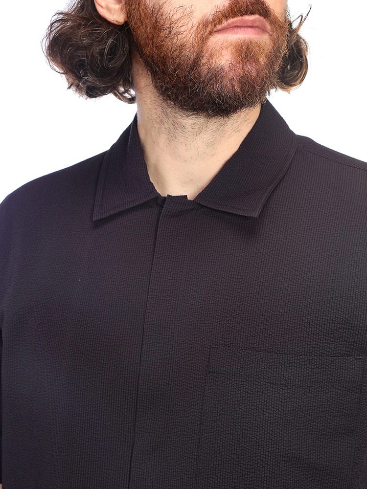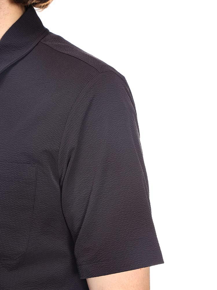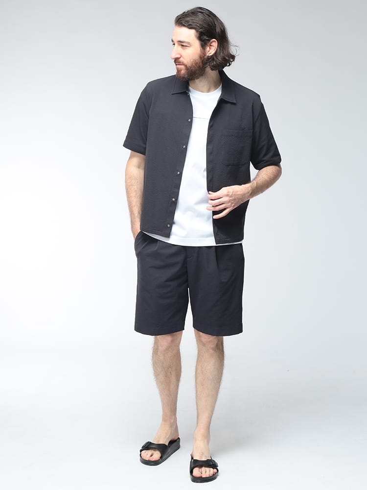 表面に凹凸のあるシアサッカー生地を採用し、汗ばむ季節でも肌離れが良く清涼感のある着心地を実現した半袖シャツです。フロントには着脱がスムーズなスナップボタンを採用しており、機能性とミニマルな美しさを両立させています。上品なレギュラーカラーのデザインは、カジュアルな装いの中にも都会的で洗練された印象をプラス。軽やかでシワになりにくいため、デイリーユースから旅行まで大人の夏スタイルを品良く格上げします。