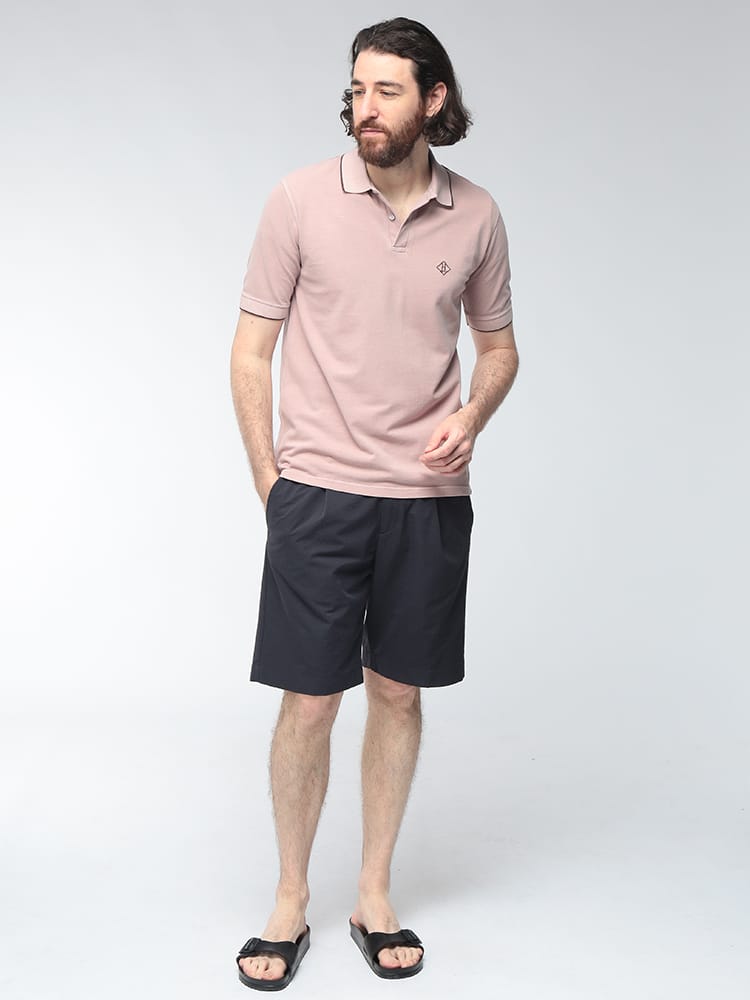 ピグメントダイ(製品染め)加工を施すことで、独特のムラ感とヴィンテージのような奥深い表情を引き出した半袖ポロシャツです。通気性に優れた鹿の子生地を採用しており、春夏シーズンでもさらりと快適な肌触りが持続します。胸元に配されたさりげないワンポイント刺繍が、ミニマルなデザインの中にブランドのアイデンティティを演出。程よく力の抜けたこなれ感があり、大人のカジュアルスタイルを上品にまとめてくれる一着です。