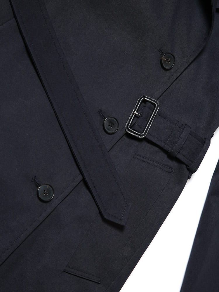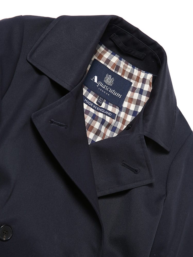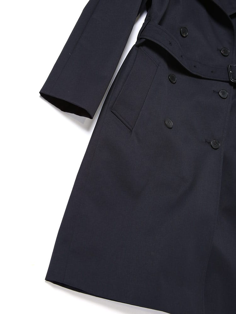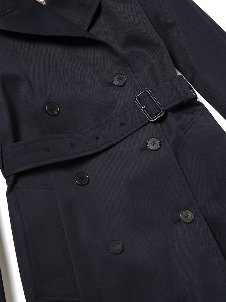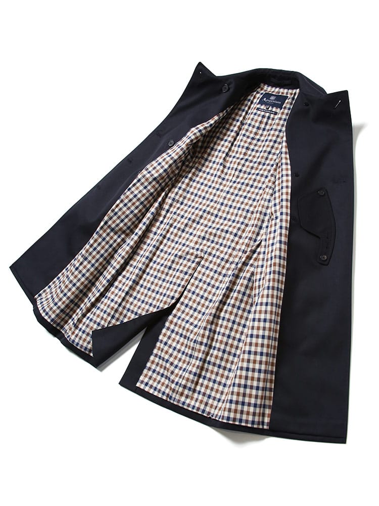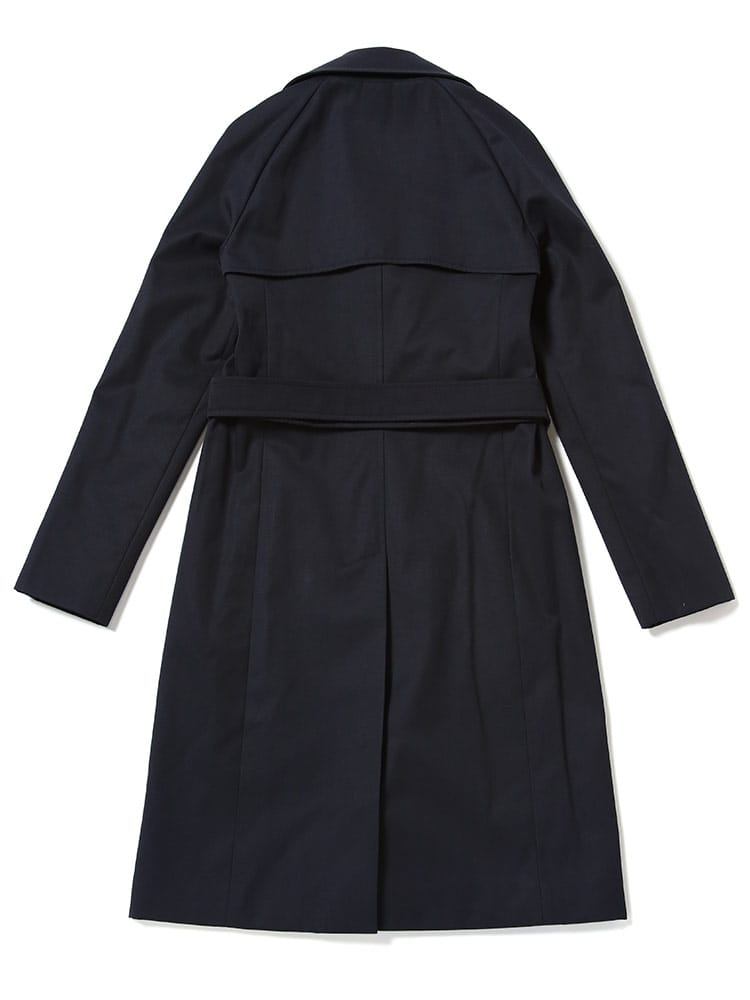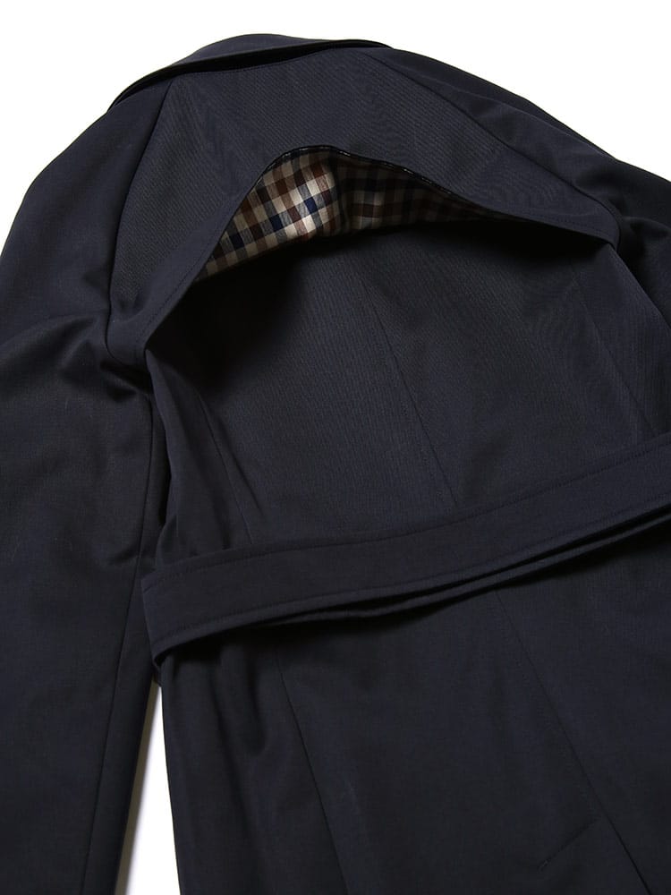 ・裏地チェックがポイントになったウエストベルト ロング トレンチコート
