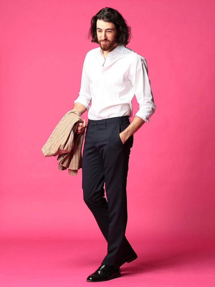 ・上質なウール混生地を使用したノータック ロングパンツ