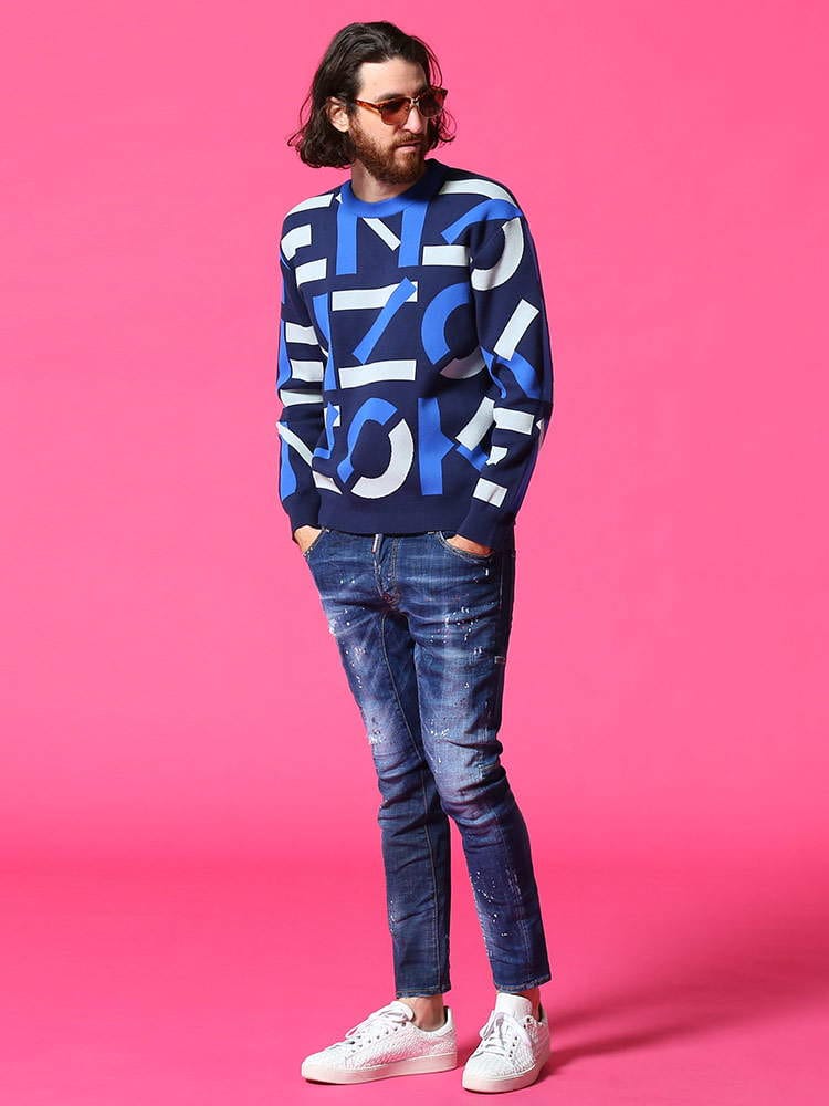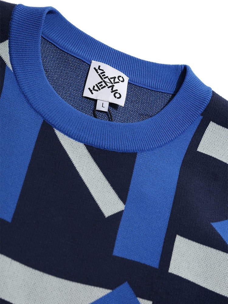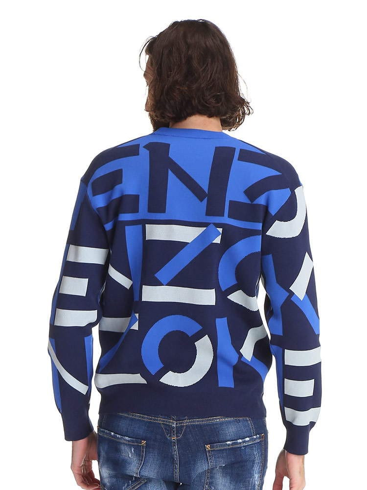 KENZO (ケンゾー) ロゴ総柄 クルーネック 長袖 ニット MONOGRAM BLUE KZFB55PU5313SC