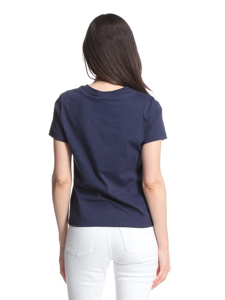 ・フロントにコントラストカラーの刺繍を施したTシャツ