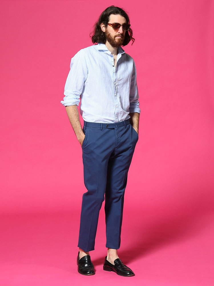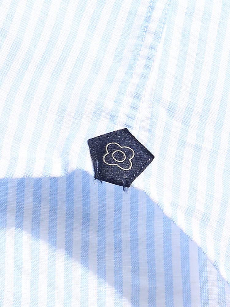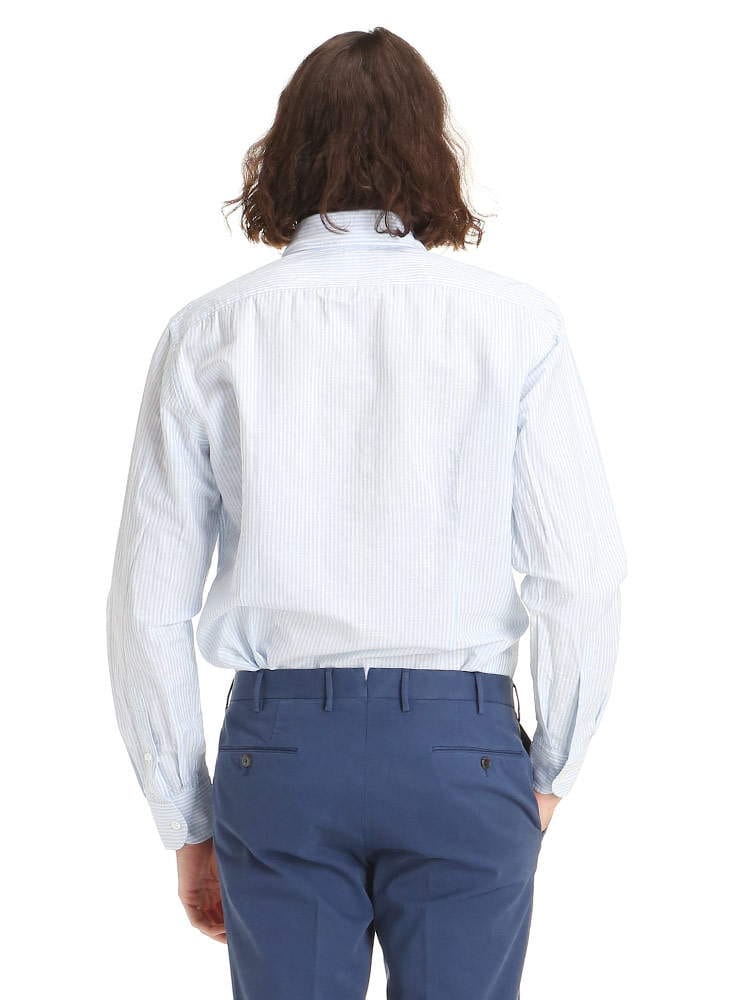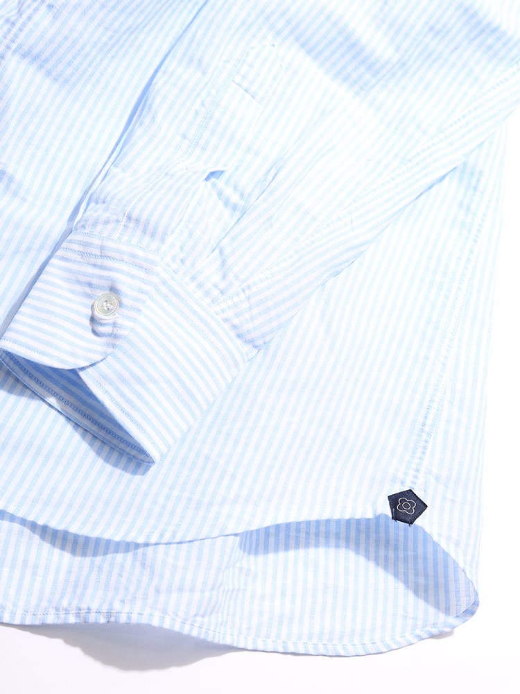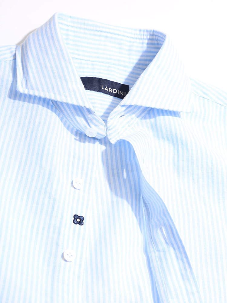 LARDINI (ラルディーニ) 綿麻 細ストライプ ホリゾンタルカラー 長袖 シャツ LDCIROELC1352