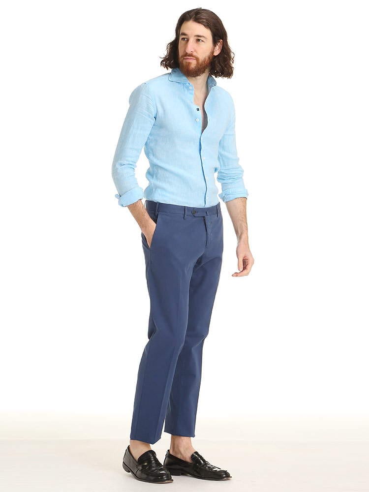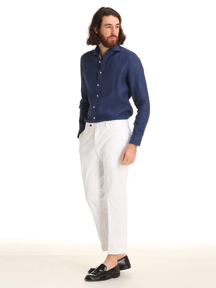 LARDINI (ラルディーニ) 麻100% 無地 ホリゾンタルカラー 長袖 シャツ LDCIROELC2014 ブランド