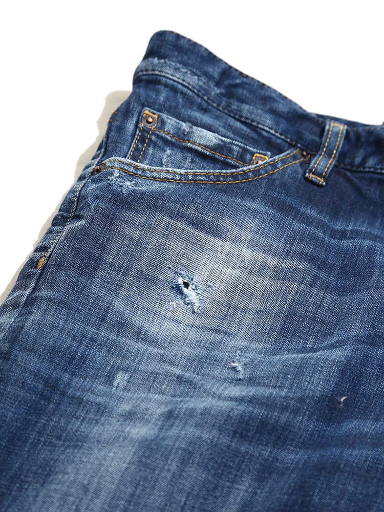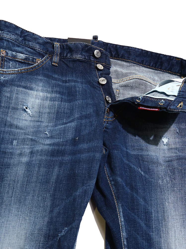 ・ダメージ加工を施したボタンフライ ジーンズ COOLGUY