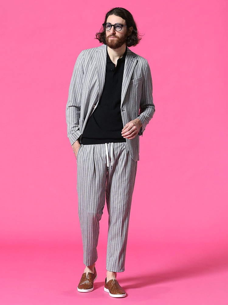 ・ストライプデザインのシングル 2ツ釦 ジャケット