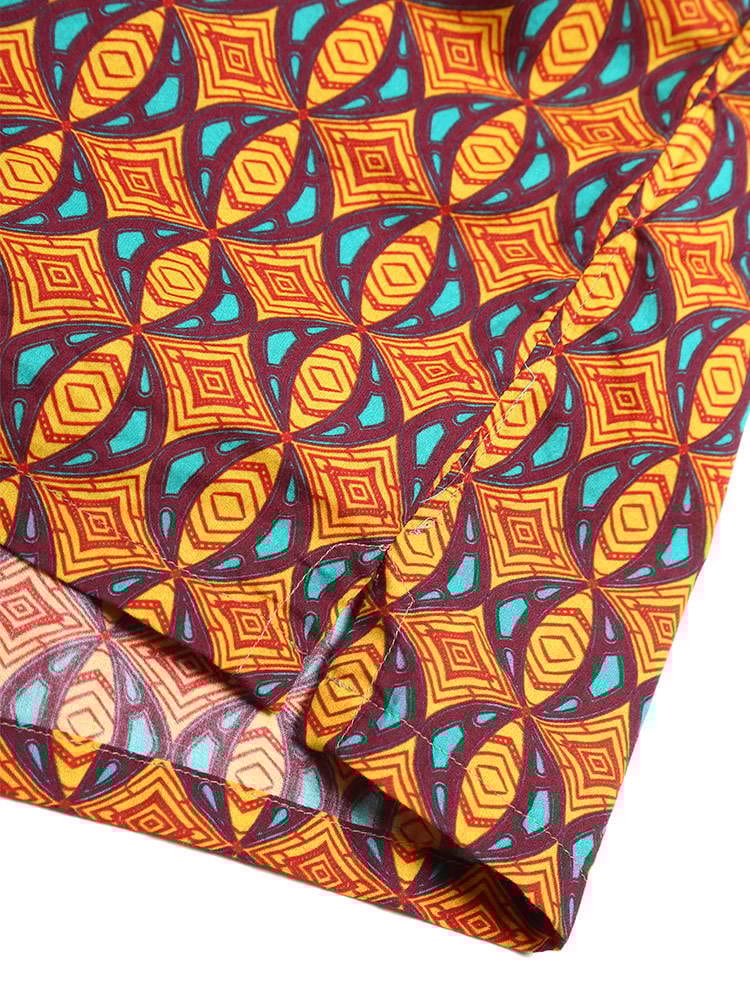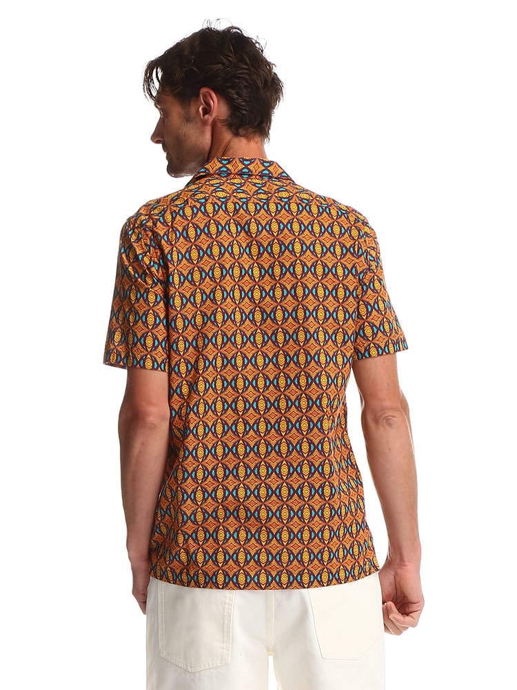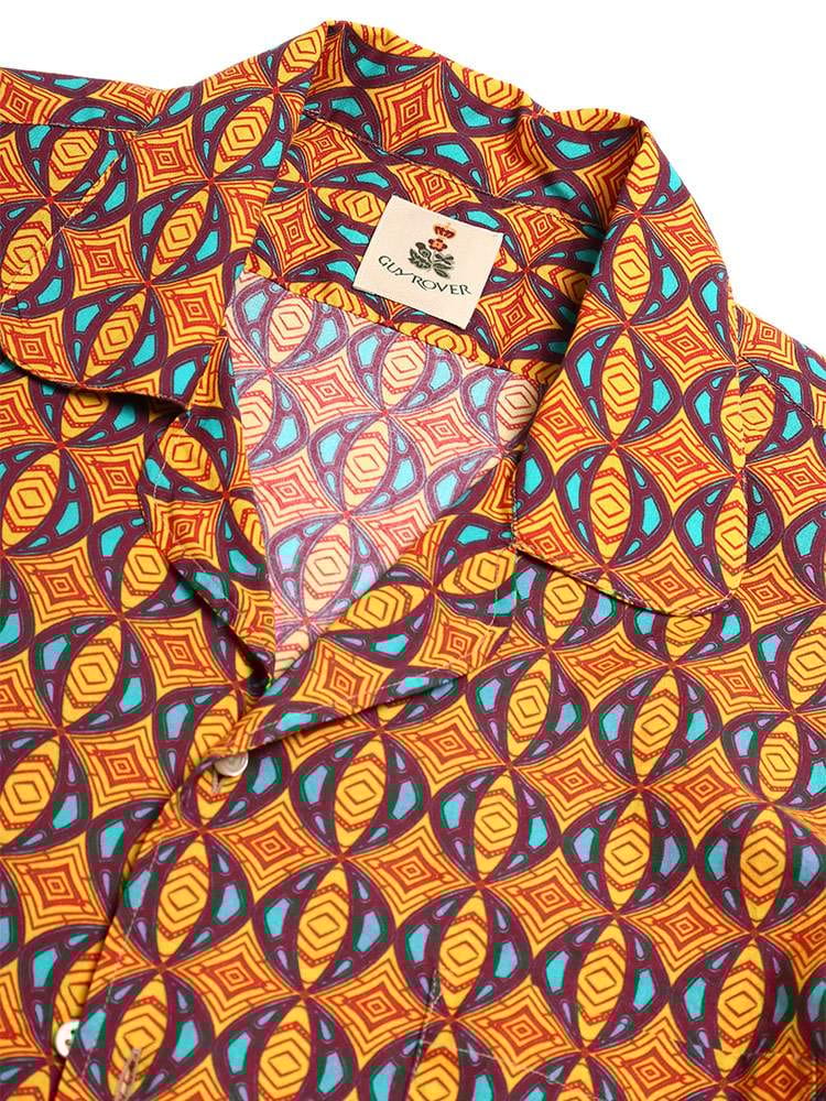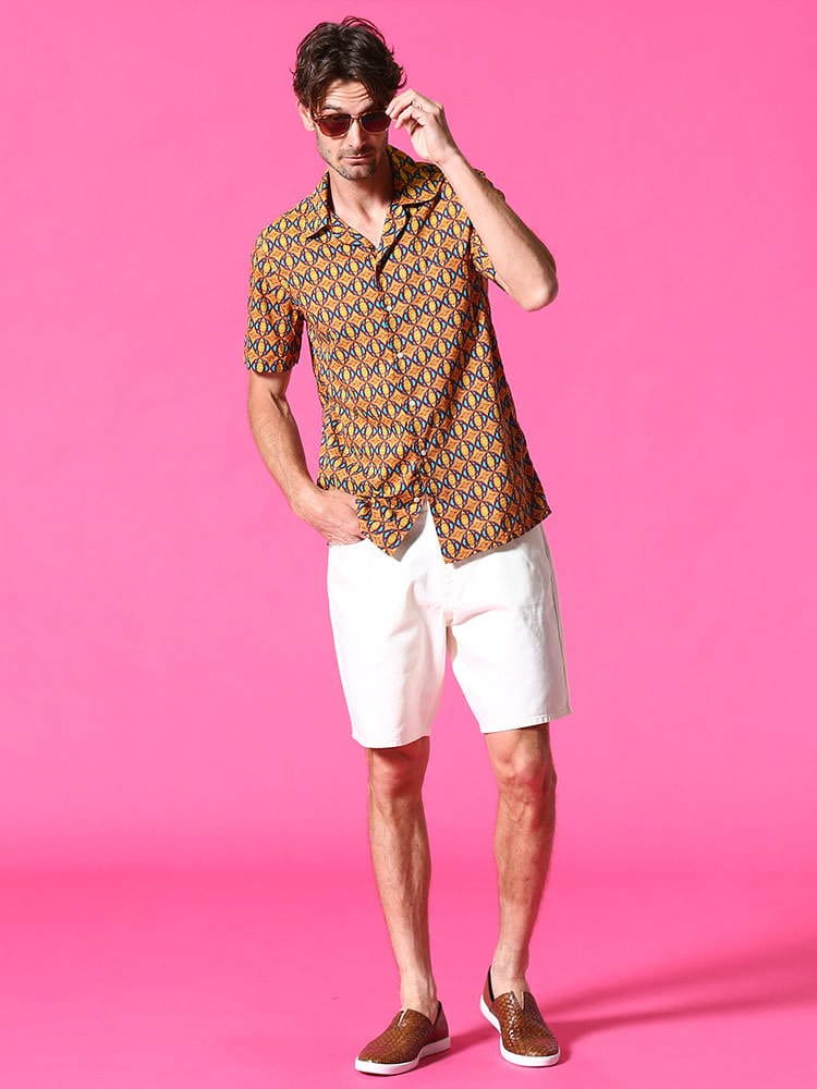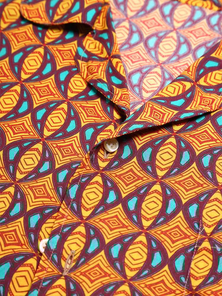 ・総柄プリントデザインのポケット オープンカラー 半袖 シャツ