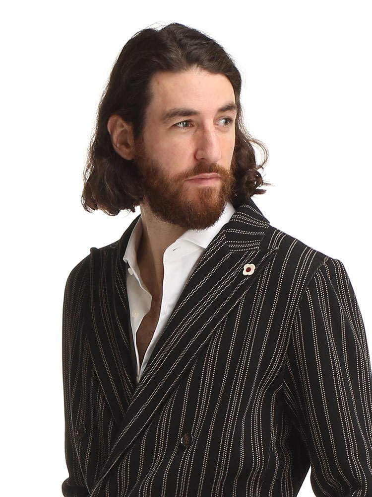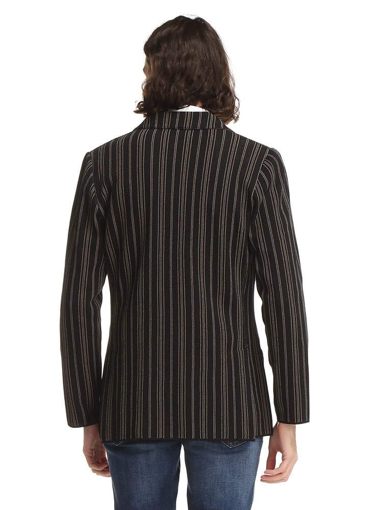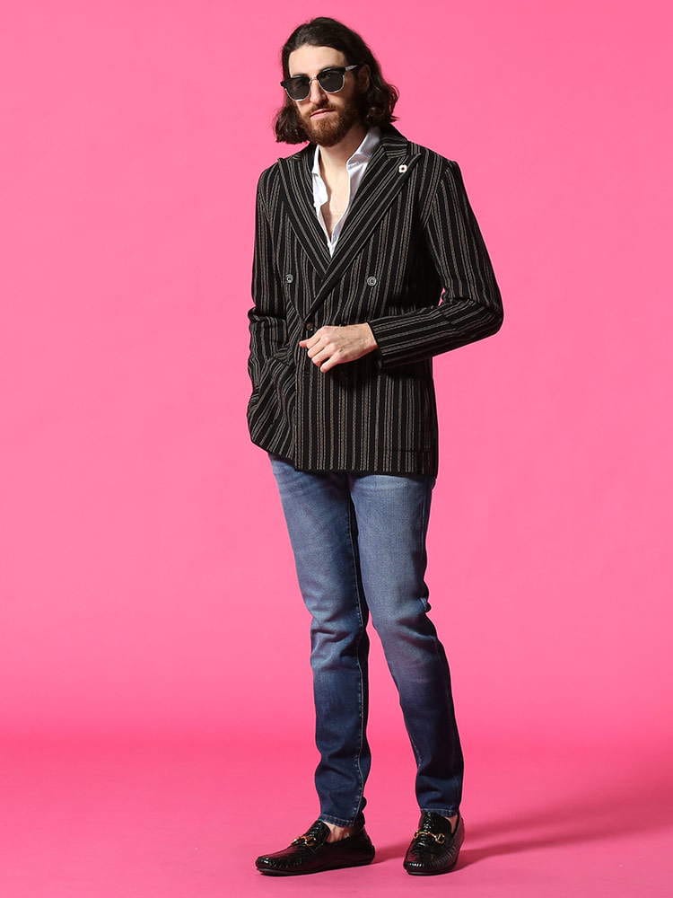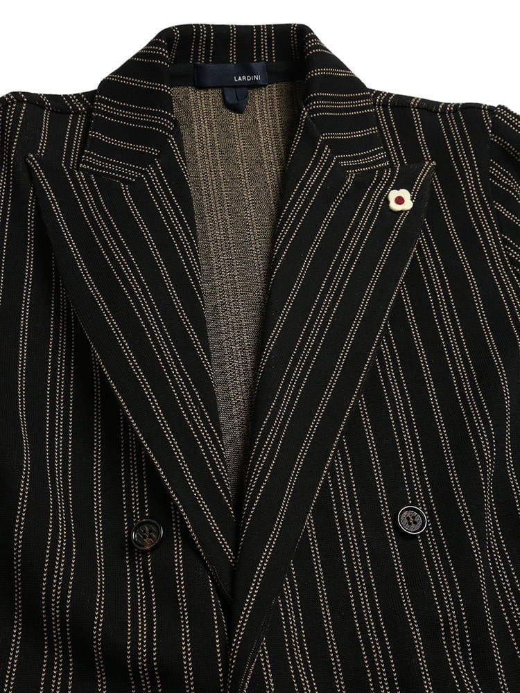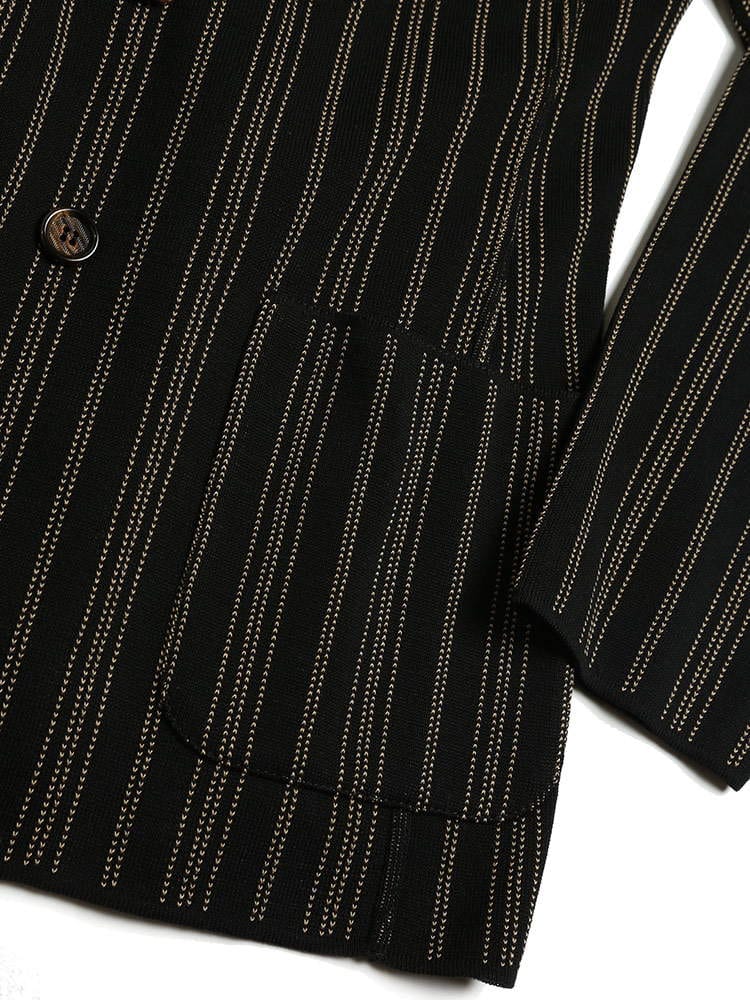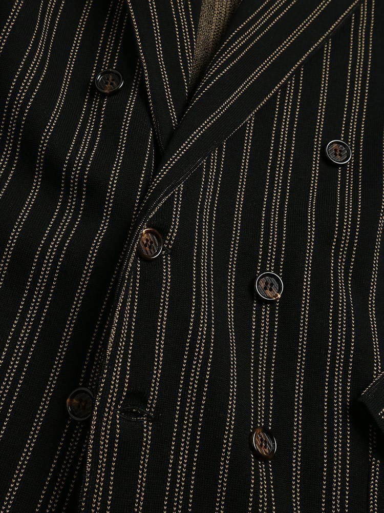 ・ストライプデザインのダブル 6ツ釦 ニット ジャケット