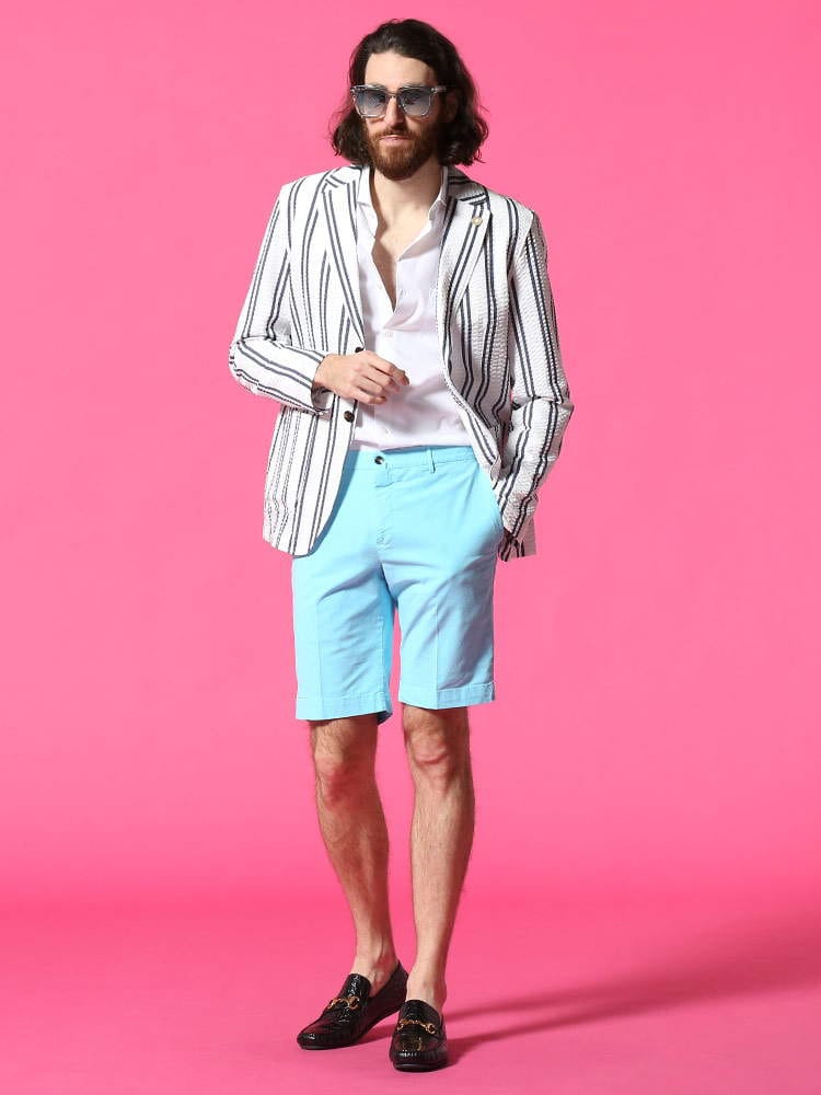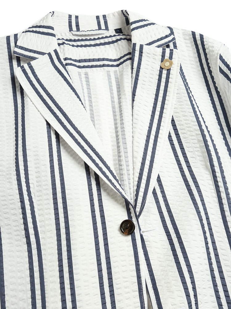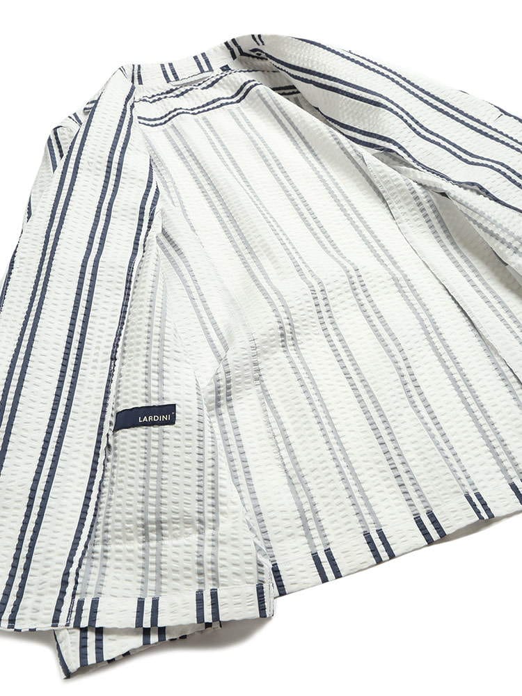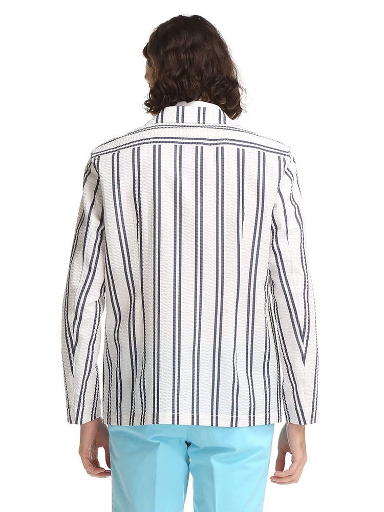 ・シアサッカー地を使用したストライプ シングル 2ツ釦 シャツ ジャケット