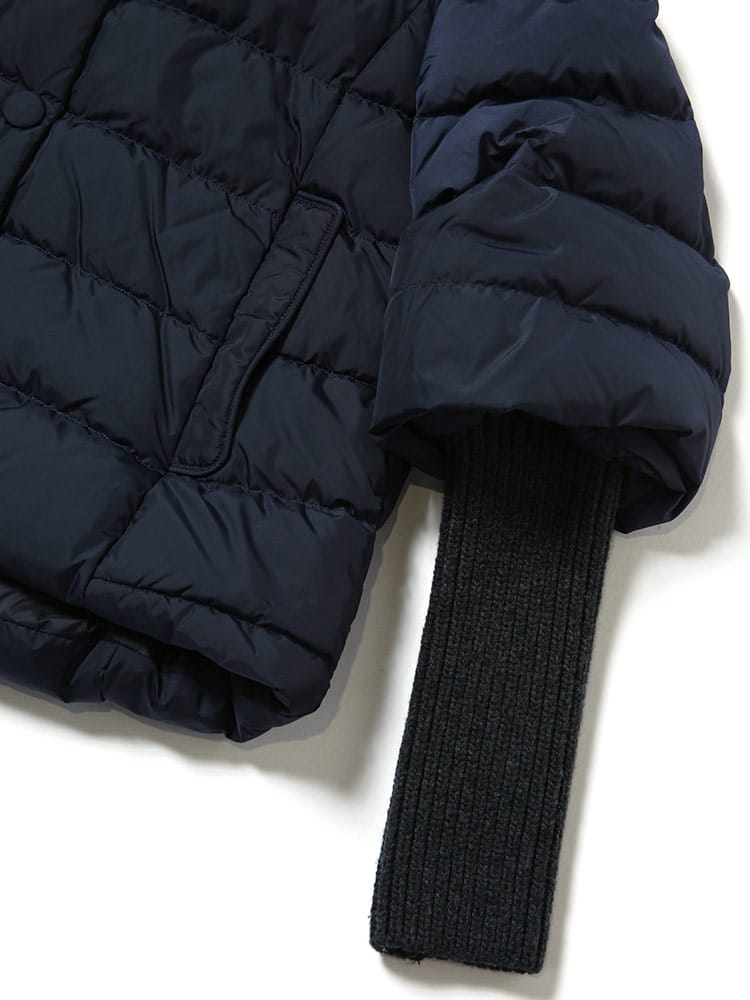 素材 :[表地]ナイロン100% [裏地]ナイロン100% [リブ部分]羊毛100% [中綿]ダウン90% フェザー10%