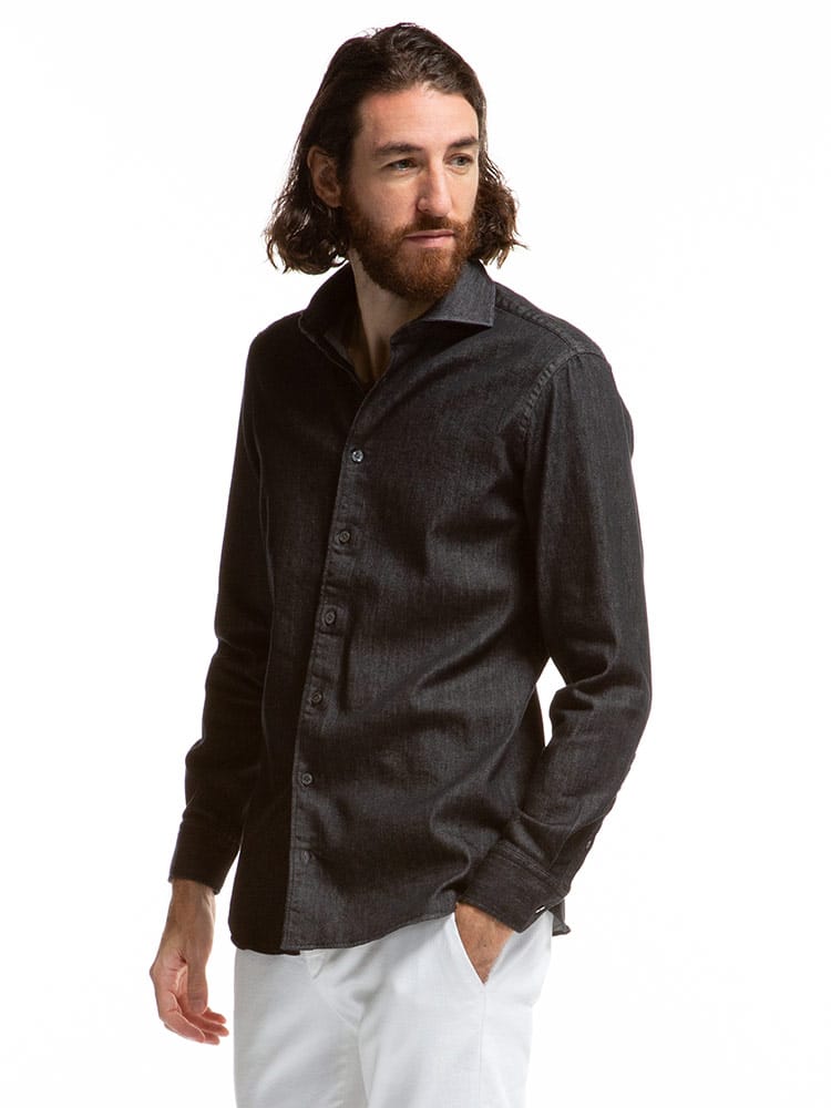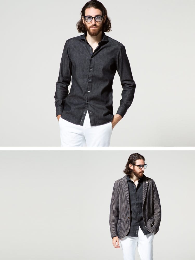 LARDINI (ラルディーニ) デニム ホリゾンタルカラー 長袖 シャツ LDDIEGOIPC1453