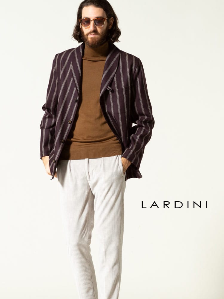 LARDINI(ラルディーニ)はイタリア中央東部のアドリア海岸に面するAnconaで創立したメンズを中心としたクロージングブランドです。伝統的な仕立の芸術そのものであるラルディーニ・ブランドは、数十年にわたる仕立の経験、地域ならではの知識、一心な決意、上質なイタリアでの製造、品質への専心に深く根差しています。こうした特徴の1つ1つが、ラルディーニを、イタリアだけでなく国際的な市場における最重要の衣料ブランドの1つにしています。