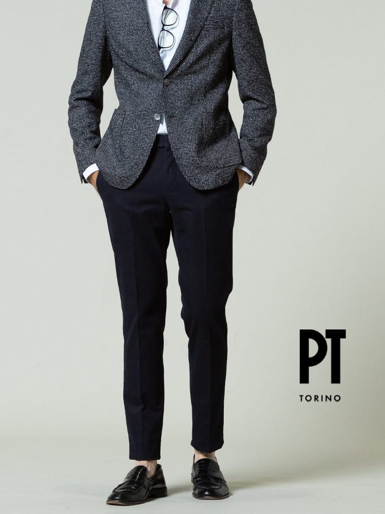 PT TORINO(ピーティートリノ)は、2008年にイタリアのトリノで「メンズクロージングにおいて最も重要なアイテムはパンツ」というコンセプトの下、パンツ専業メーカーとして誕生しました。それまでクラシック一辺倒だったドレスパンツの世界に、幅広いデザインソースから取り入れた多彩なバリエーションを揃えました。各モデルにテーマを設定し、独自のデザインでその世界観を演出。パンツの可能性を広げる多様性にくわえ、そこには美しいヒップラインとともに脚長効果も備えた完璧なシルエットが構築され、現代の魅力を存分に伝えます。PT TORINOのブランドネームPT TORINOは、創業地であるトリノへのトリビュートとともに、究極のパンツを創るという強い意志が込められています。