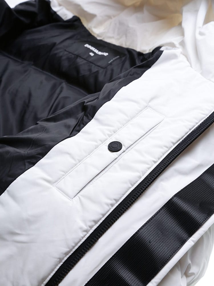 素材 :[表地]ポリエステル100% [裏地]ナイロン100% [ポケット裏地]綿100% [付属部品]ウール94% ナイロン3% ポリウレタン3% [詰物]ダウン80% フェザー20%