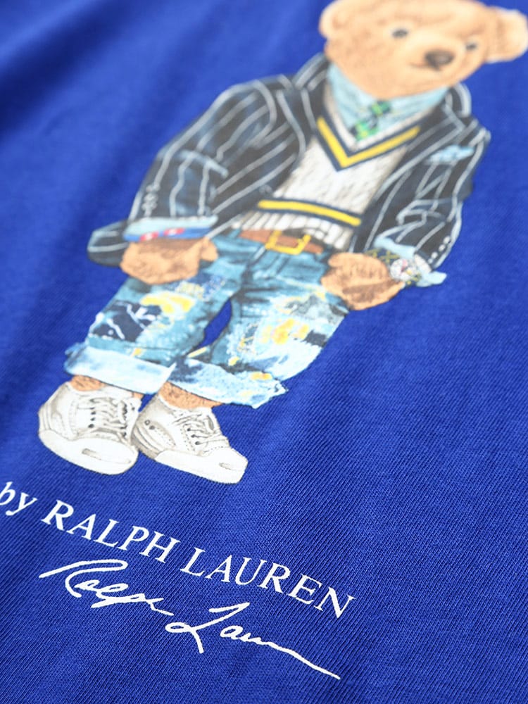 デニムにジャケットを着た大人っぽいベアのプリントが施されています。