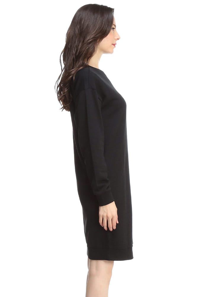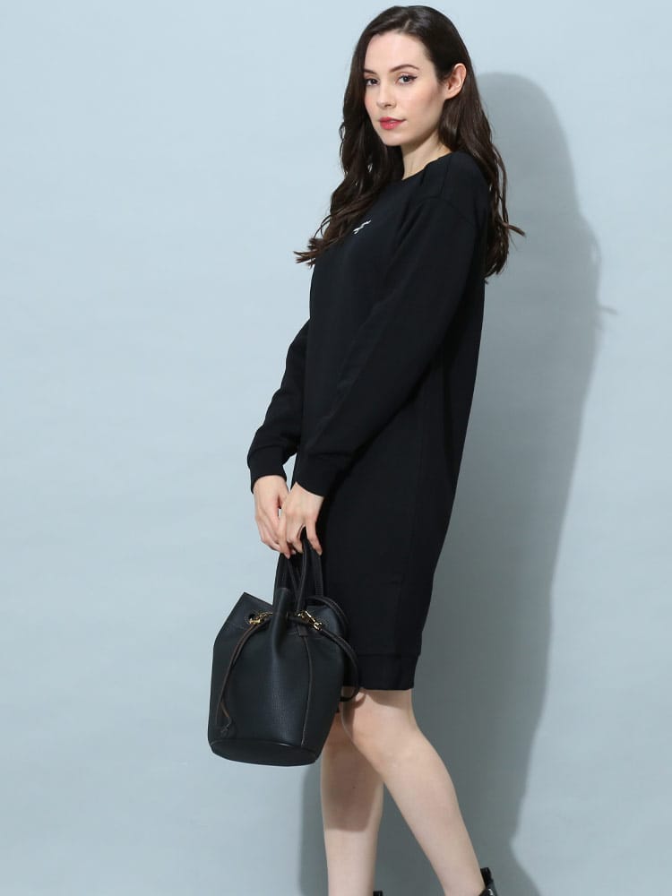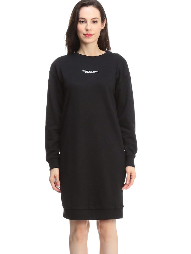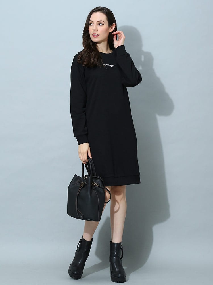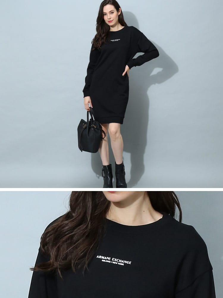 2022年 秋冬新作のスウェットロングワンピースです。アルマーニエクスチェンジの定番として毎年スウェットワンピを出していますが、今年はシンプルで使い勝手のよいデザイン!モノトーンなので合わやすく、ジャケットやコートと合わせてマニッシュスタイルや、ロングブーツやロングスカートと組み合わせても可愛いです。膝上丈になりますが、短すぎないので高身長さんでも安心です。裏起毛ではありませんので春先までお使い頂けます。( スタッフS )