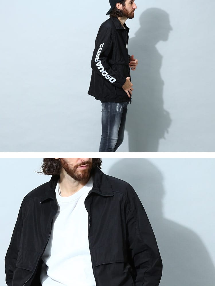 イタリアの大人気ラグジュアリーブランドのDSQUARED2から使い勝手抜群のナイロンジャケットが登場です。ブラックの落ち着いたカラーに右袖のロゴプリントが程良い主張とブランドの所有欲を満たしてくれます。裾はドローコードで絞ることが出来るので、シーンに合わせて着こなしを調整出来るのも嬉しいポイントです。毎年人気のブランドですので、お早目にチェックしてみてください!