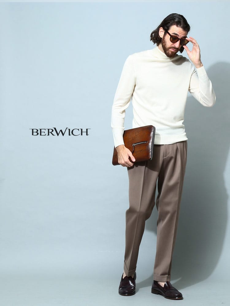 1975年、イタリアのプーリア州マルティナフランカにパンツ専業会社として創業。イタリア製にこだわり、パンツを製造してきました。2004年にオリジナルのパンツブランド、「BERWICH (ベルウィッチ) 」をスタート。世界のさまざまな国の文化への探求心と情熱をベースに生み出されるコレクションは、パーツに至るまで100% 「made in Italy」にこだわり、遊び心のあるディテールの表現など細部にもこだわった高品質のモノづくりを提案するブランドです。