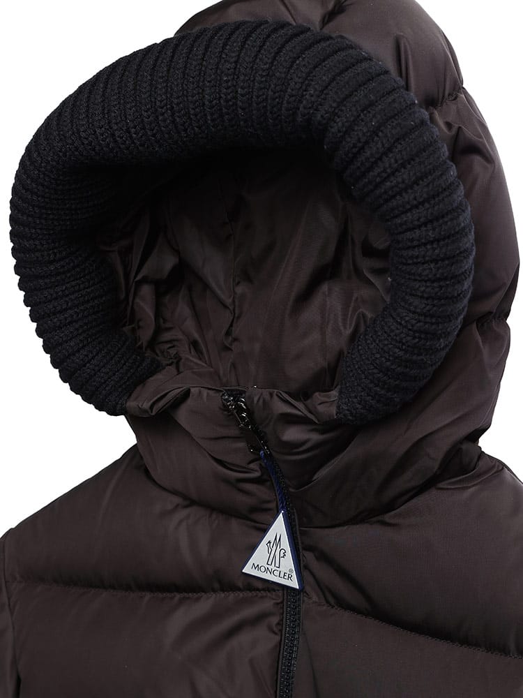 ・ニットの縁取りとテクニカルナイロン素材の裏地付フード