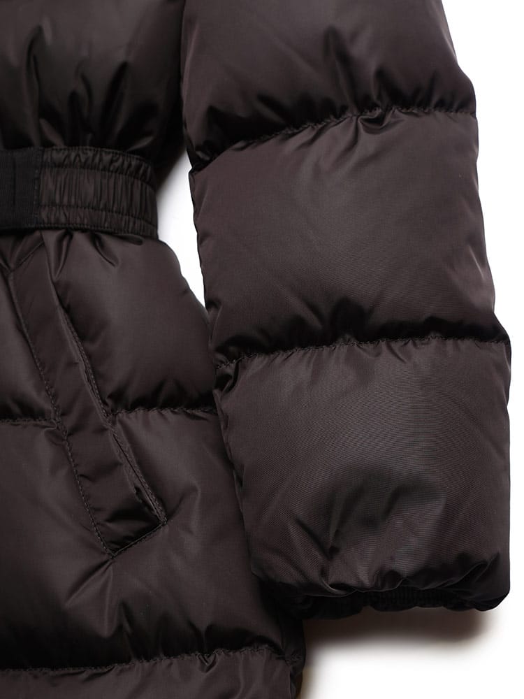 2022年秋冬新作のロングダウンジャケットになります。シンプルなデザインは大人っぽくエレガントな着こなしが出来ます。膝丈が隠れる長さで防寒性も抜群です。テクニカルナイロン素材を使用しています。調節可能なベルトでシルエットの調整も可能です。デイリーユースはもちろん、通学などにも活躍するお薦めの1着です。